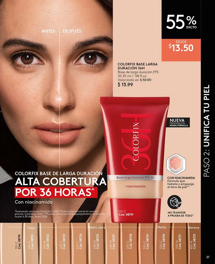 - Hidra Smart de 28ml. Base de maquillaje hidratante con FPS15, larga duración y está disponible en 12 tonos.