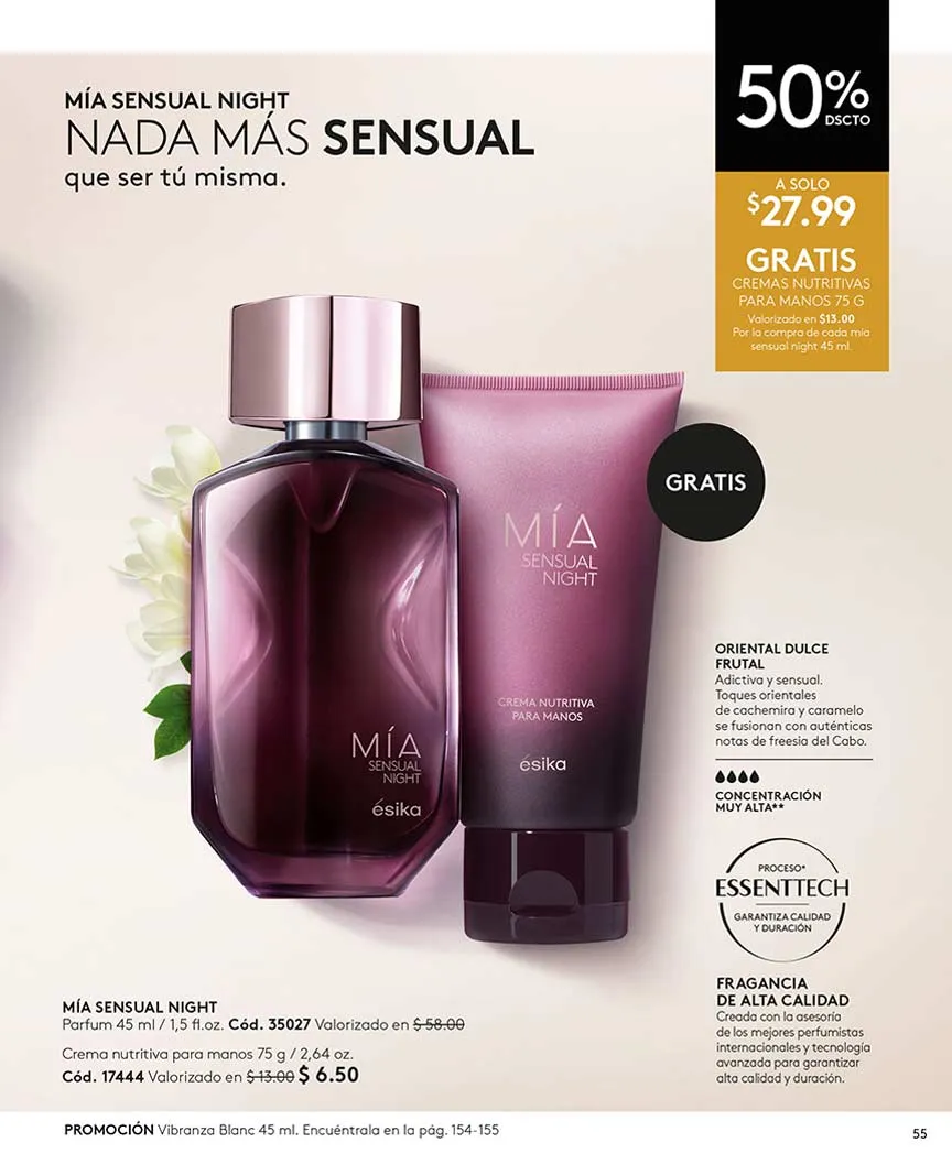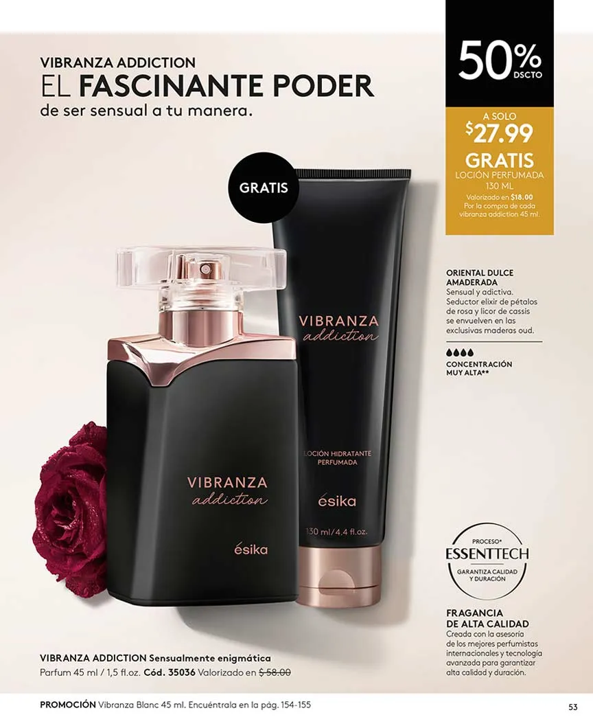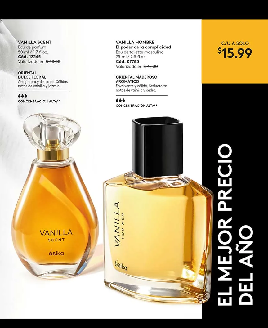 - Eau de parfum Vanilla Scent de 50ml fragancia oriental dulce de concentración alta. Se encuentra disponible en el catálogo Ésika 4 2025 Ecuador y puedes llevarla a precio especial de temporada.