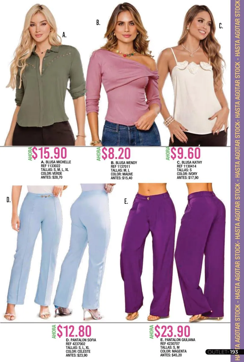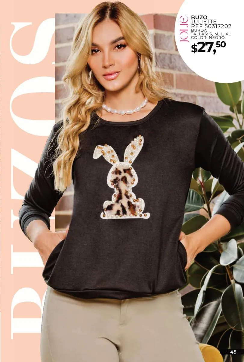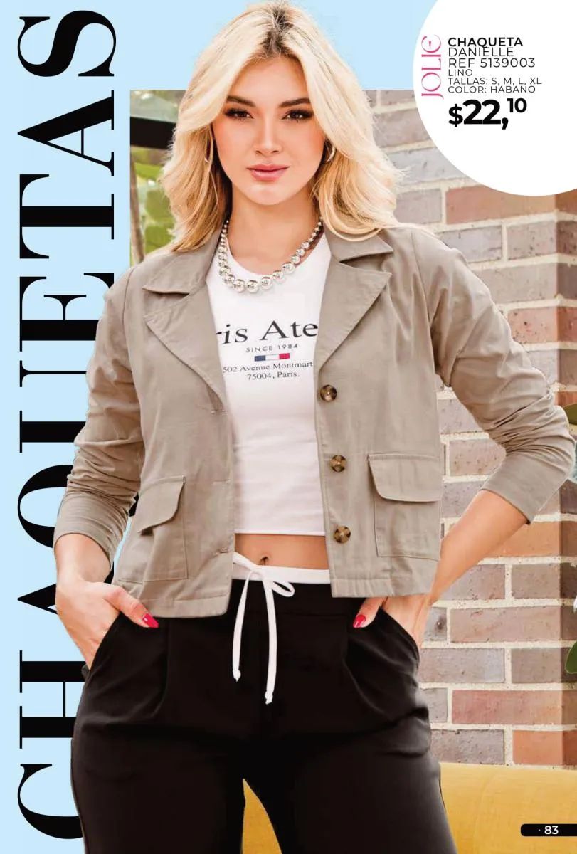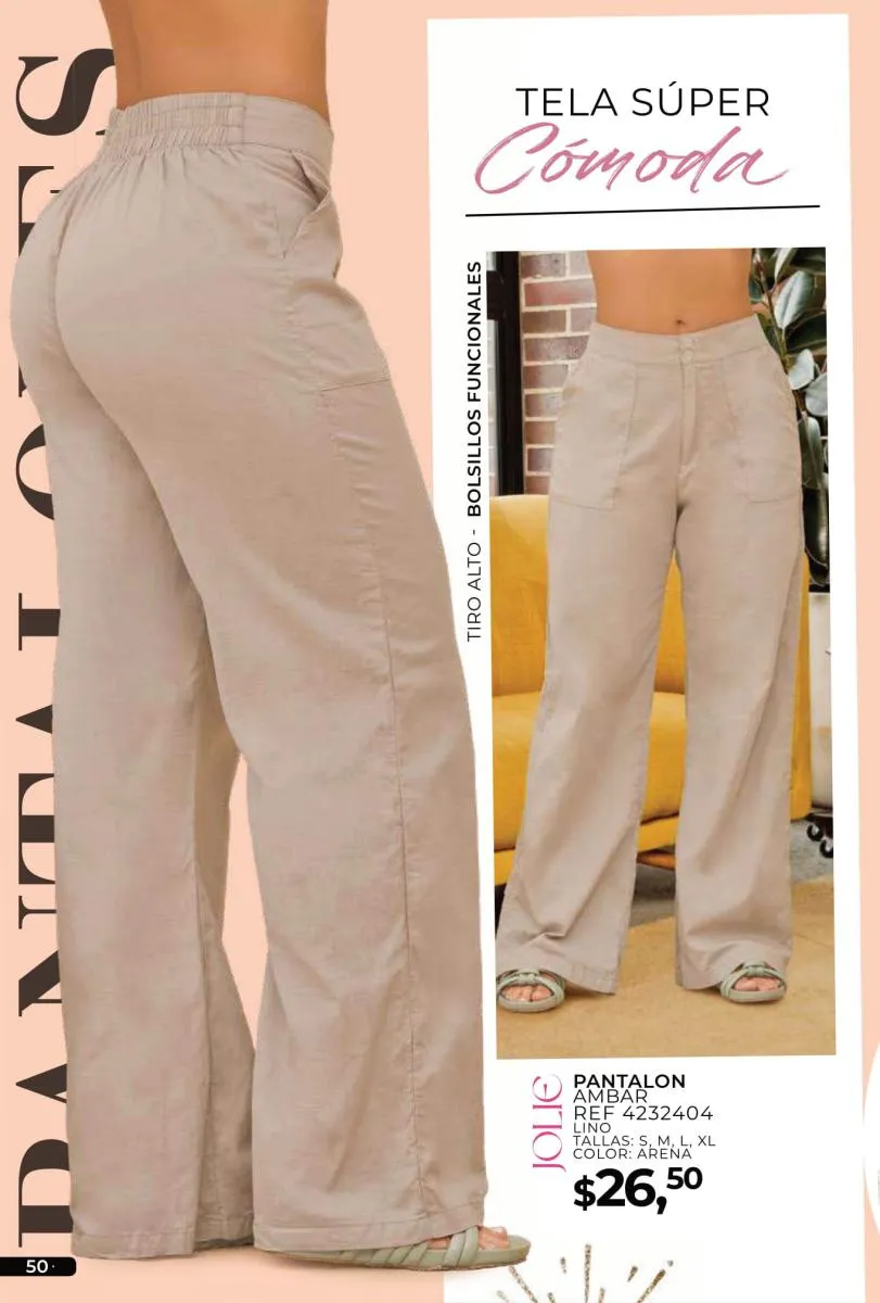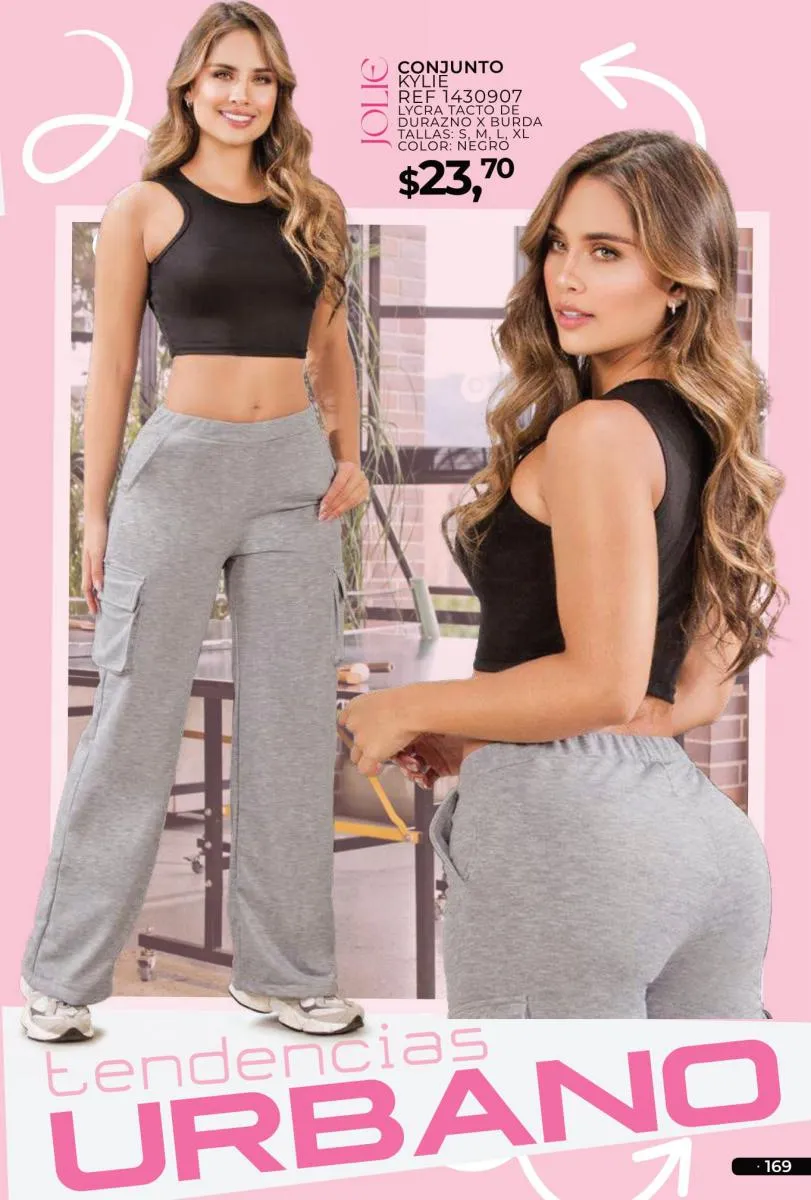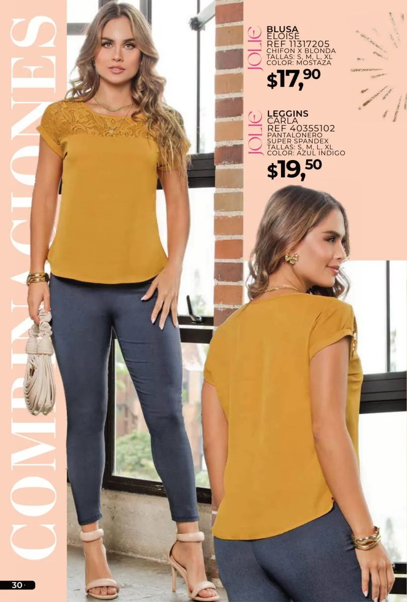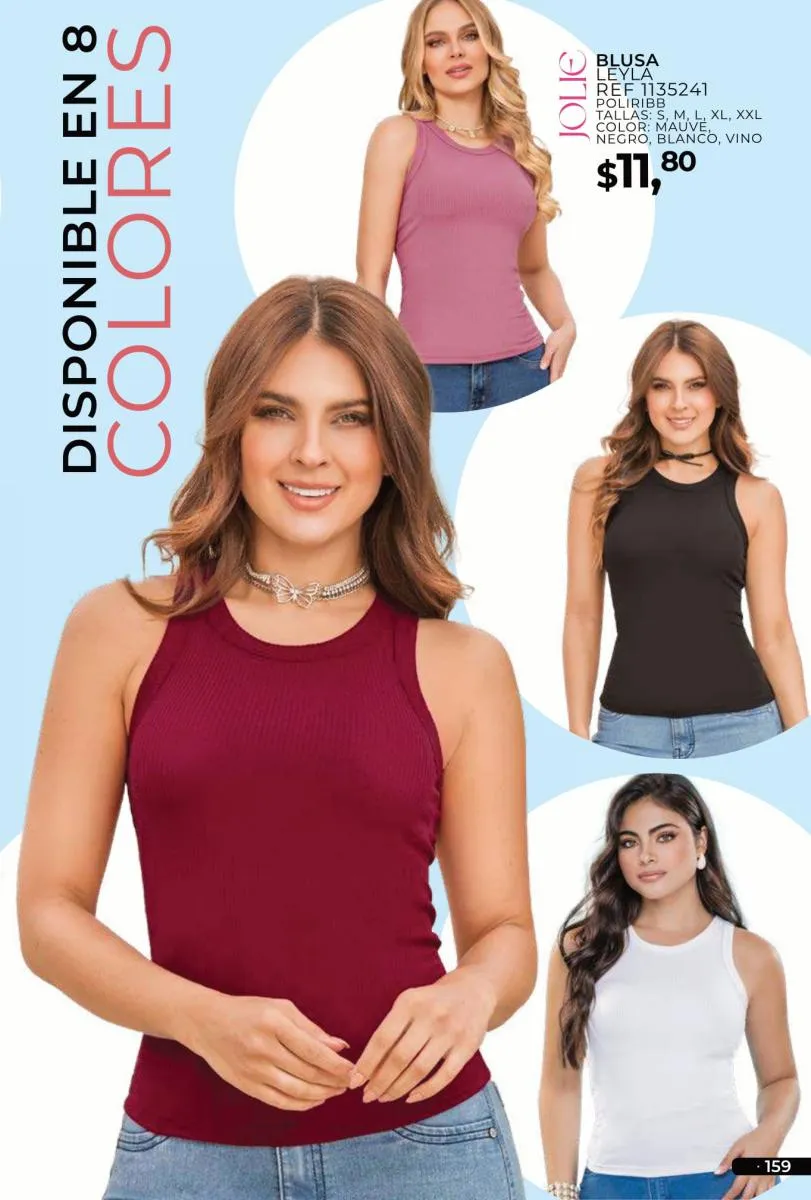 - Para atraer todas las miradas en este mes de aniversario Jolie, el color negro es ideal para ello. Búscalo en un enterizo “Saida” de lycra texturizada y tull (pág. 10) o un pantalón “Anny” en gabardina súper spandex (pág. 13).