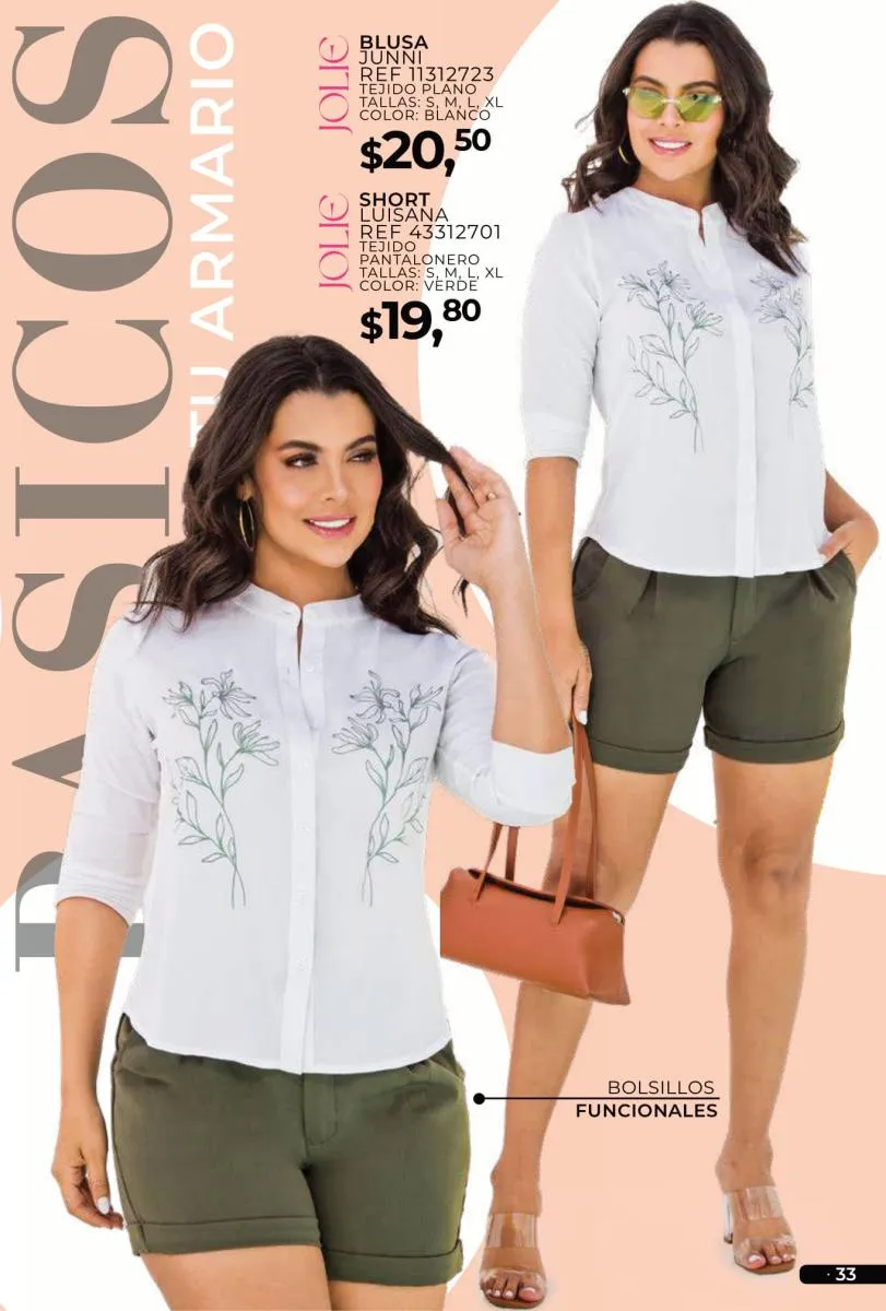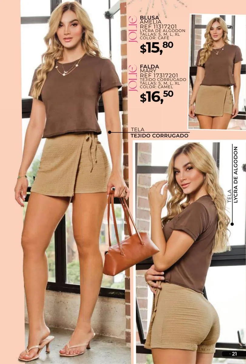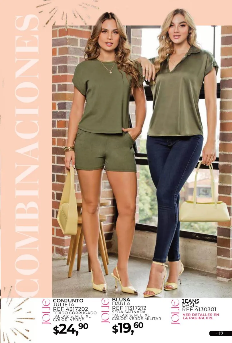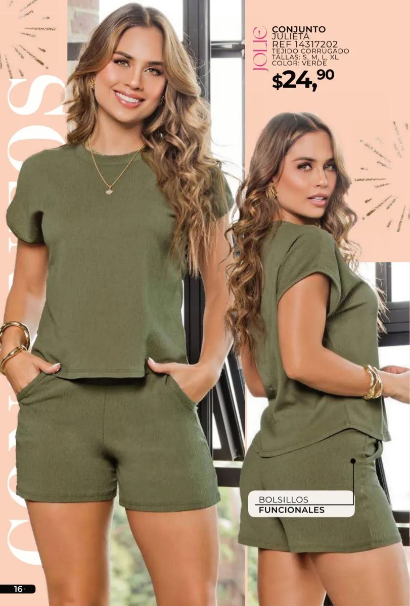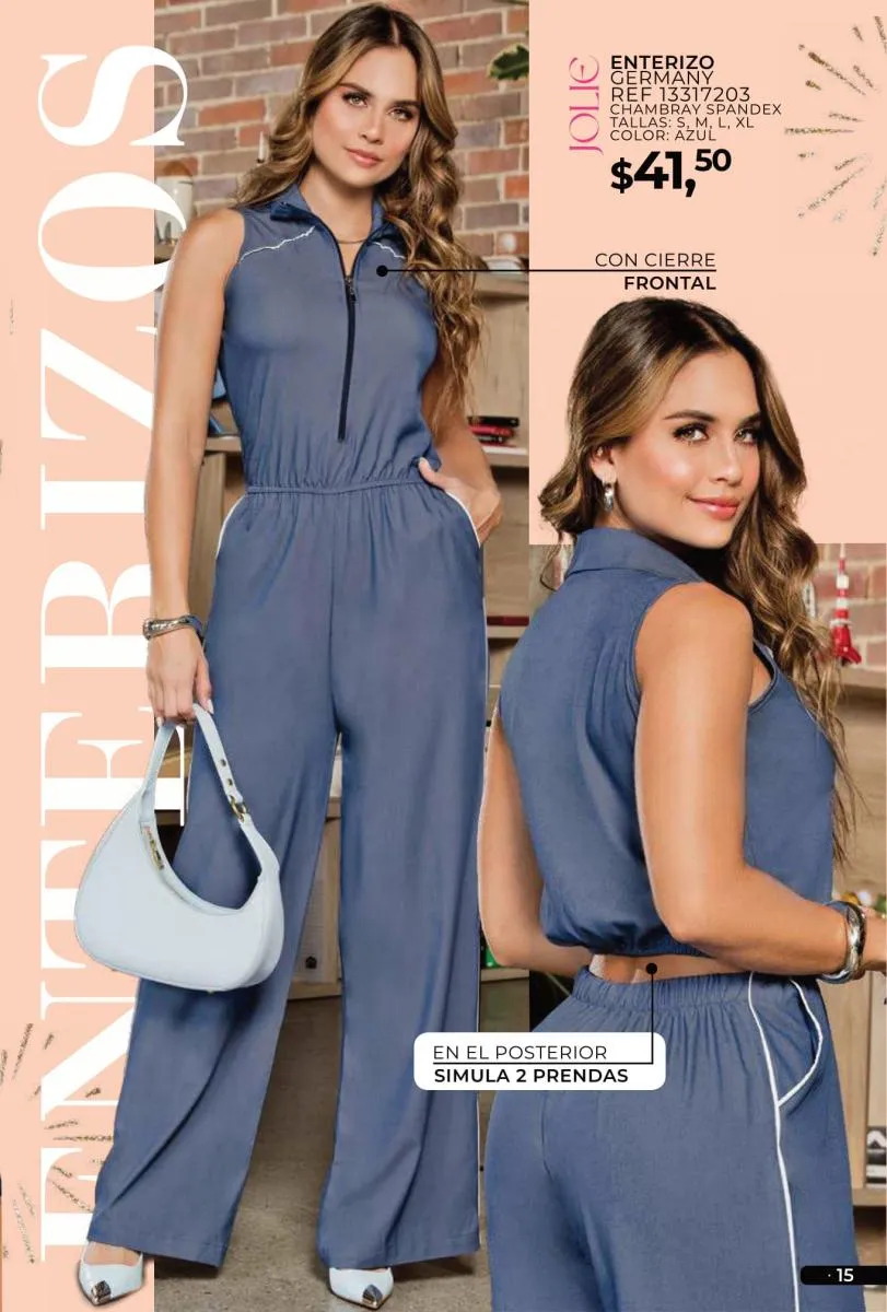 - Y para verte sexy y atraer miradas, el enterizo Julia de pantalón corto y blusa blanca resulta un ganador absoluto. Búscalo en la página 32 de esta Jolie campaña 13 2025 Aniversario.