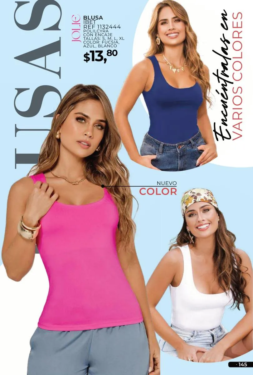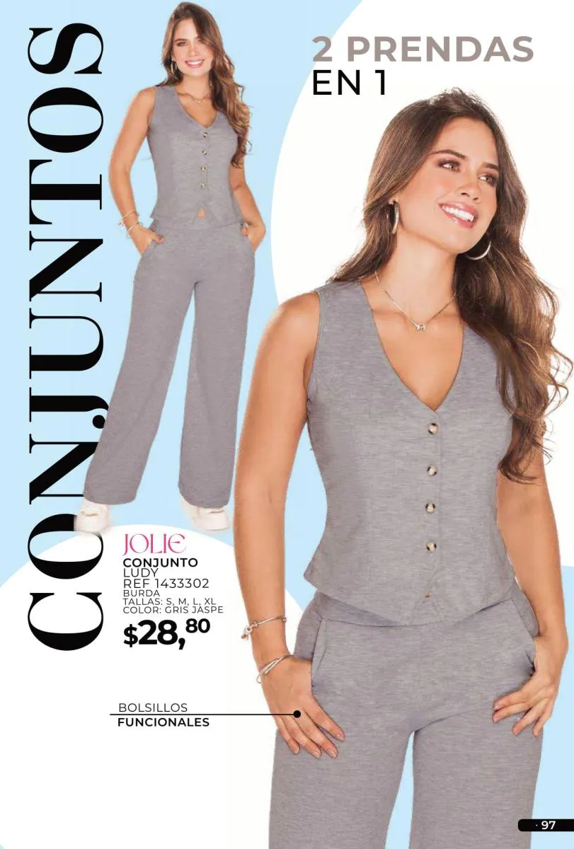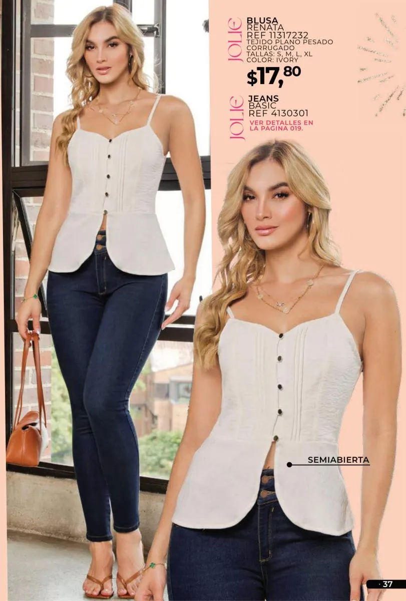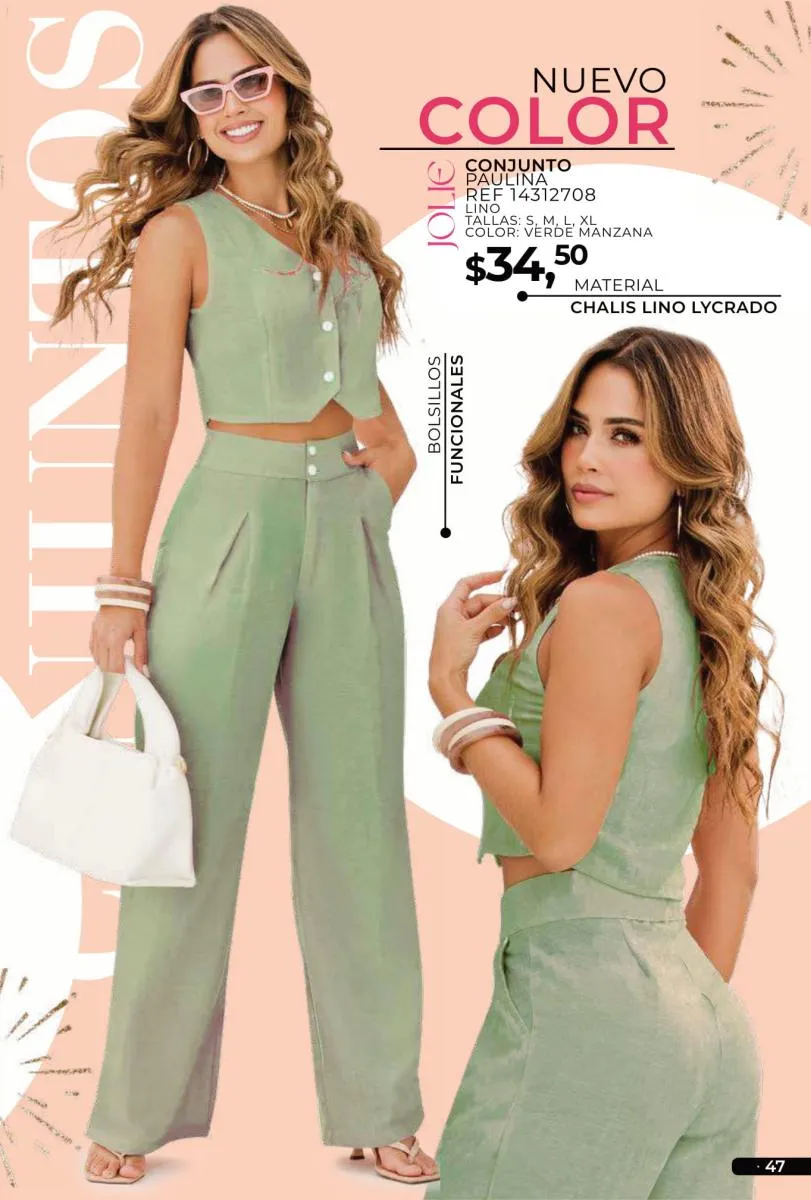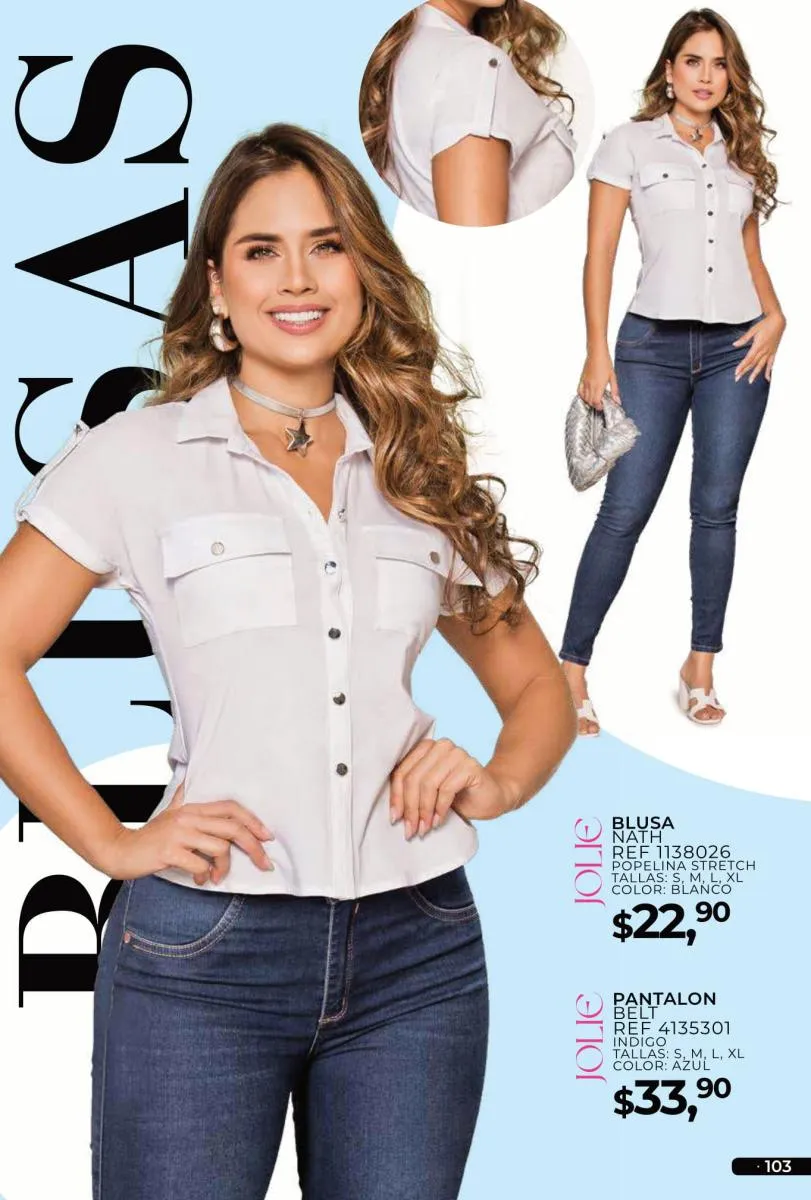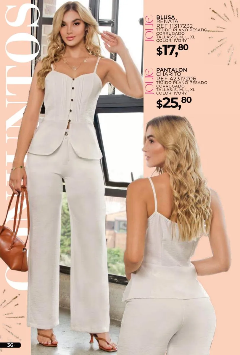 - Y para verte sexy y atraer miradas, el enterizo Julia de pantalón corto y blusa blanca resulta un ganador absoluto. Búscalo en la página 32 de esta Jolie campaña 13 2025 Aniversario.