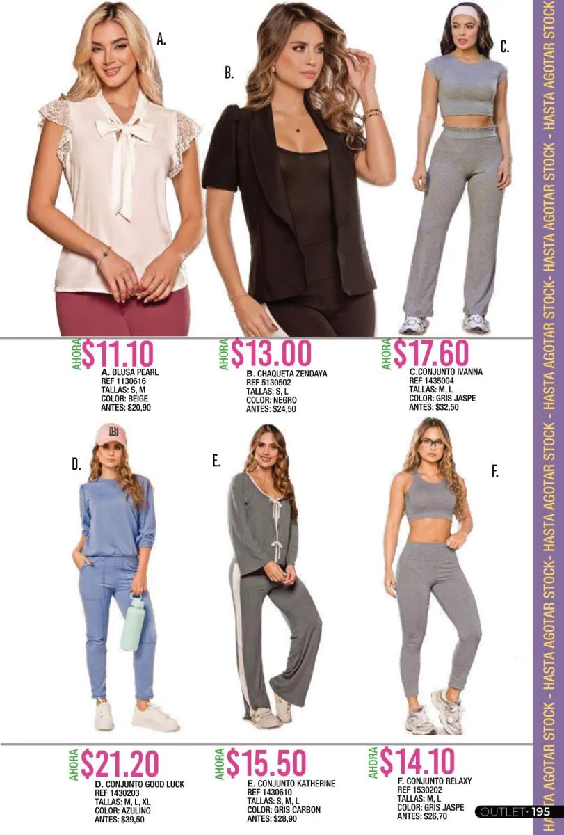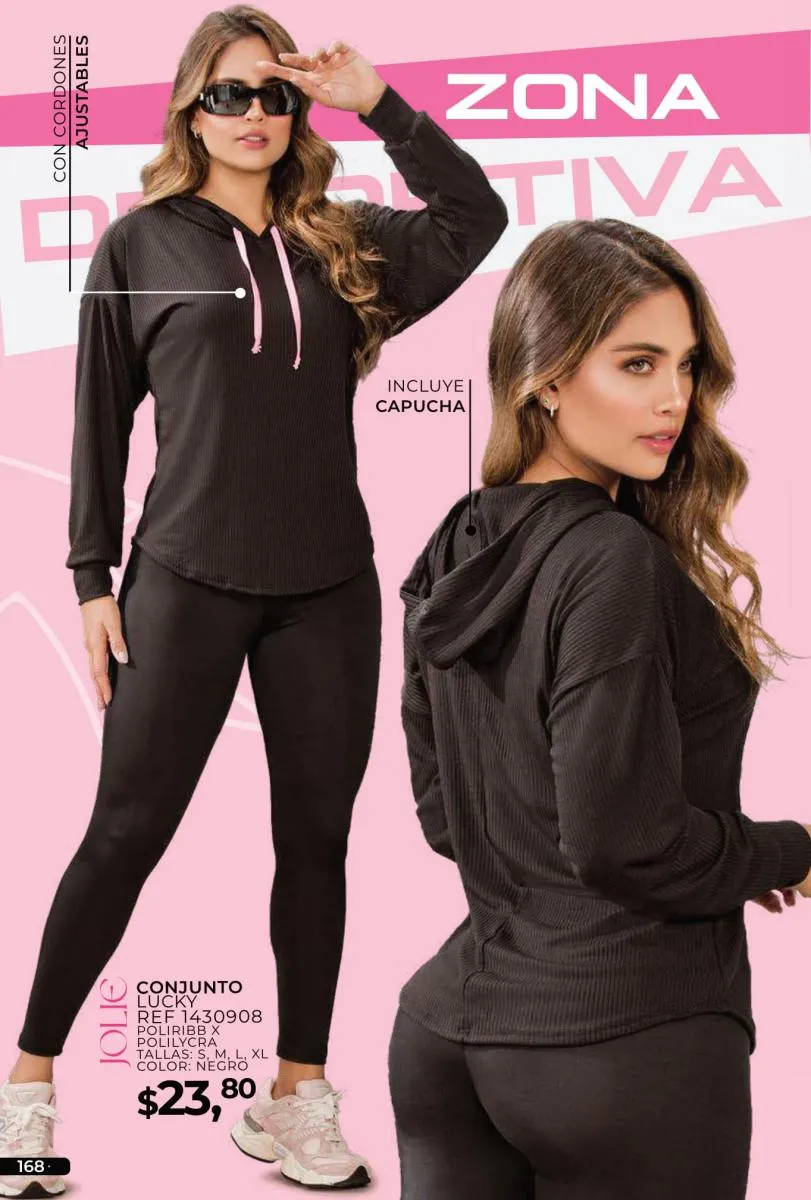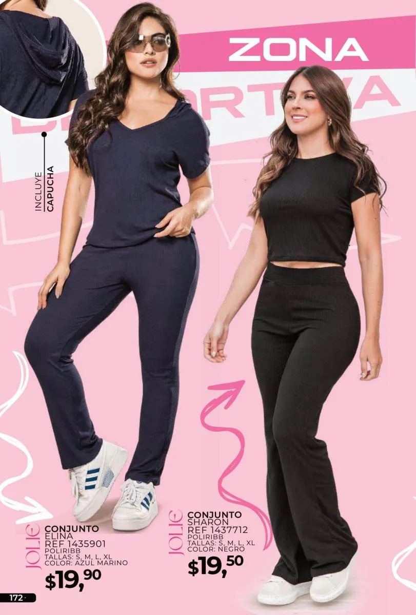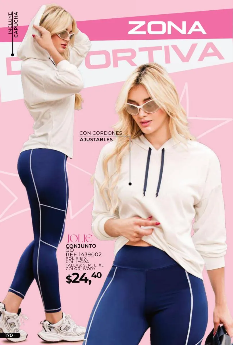 - La ropa “Activa” para damas es un especial en esta revista. Revisa los modelos de conjuntos y tenis disponibles para ti desde la página 170.