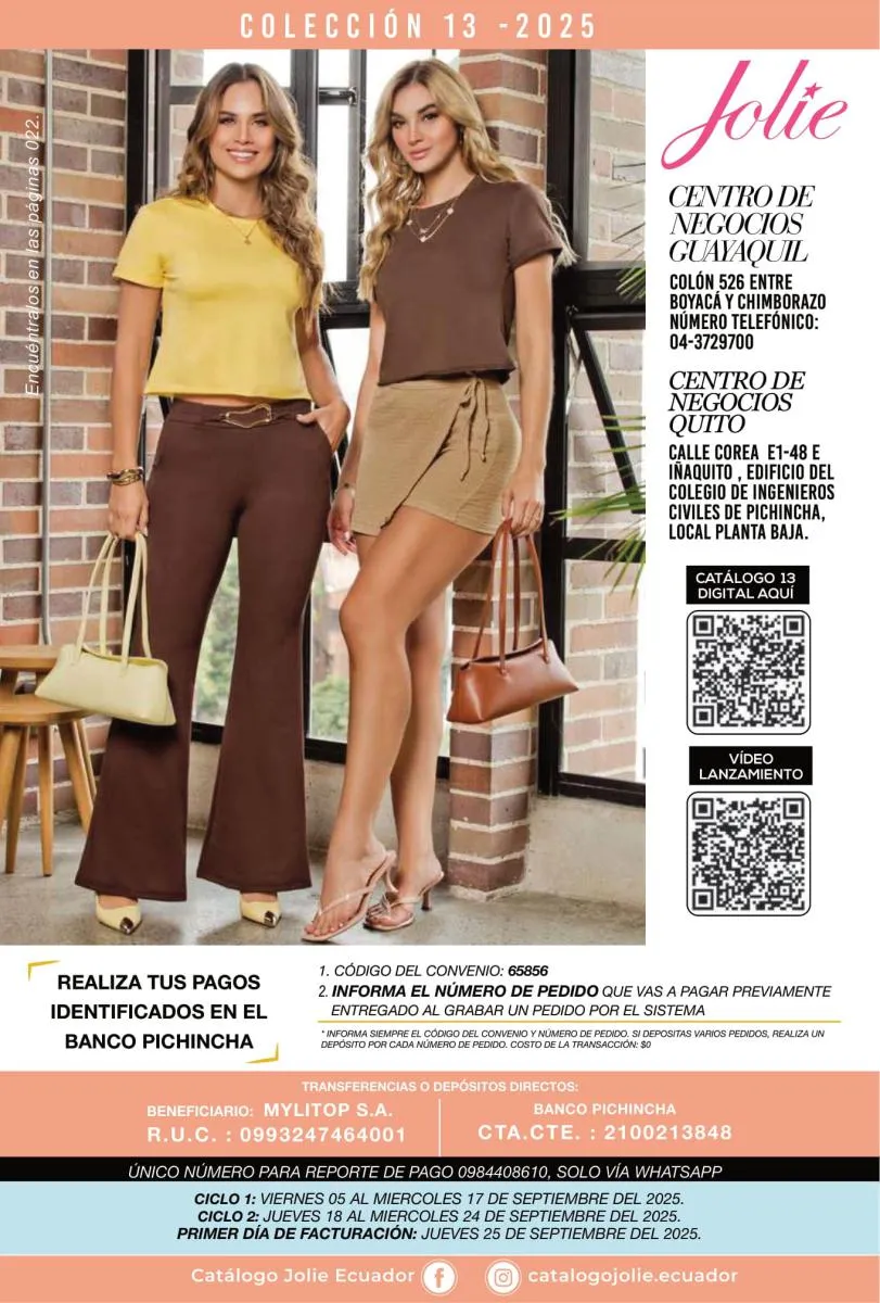 Disponible este nuevo catálogo Jolie campaña 13 2025 Ecuador que este mes está de “Celebración por Aniversario”. Son 10 años llevando lo mejor de la moda a los ecuatorianos que saben que vestir bien es fundamental.