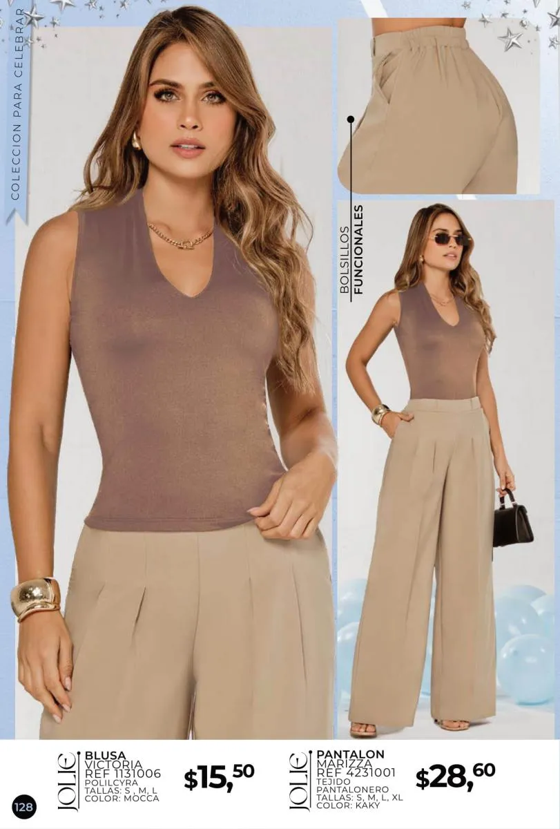 Otro punto a destacar es la versatilidad de las prendas, que permiten combinaciones fáciles y modernas. Desde los vestidos ligeros ideales para el día, hasta los conjuntos más estructurados para eventos formales, cada pieza en el Jolie campaña 14 2025 se adapta perfectamente a las diferentes facetas del día a día, siempre manteniendo una estética sofisticada y actual.