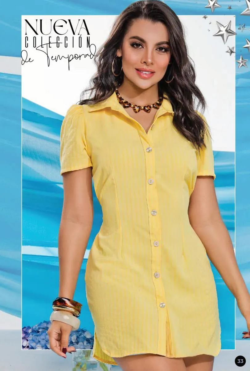 Uno de los diseños más destacados es el vestido Saray, que combina elegancia y frescura en un tono celeste suave. Esta prenda, con un corte halter, es ideal para eventos al aire libre o reuniones casuales. Su silueta ligera y el detalle de capas aportan un toque romántico y juvenil, perfecto para las mujeres que quieren lucir modernas sin perder ese aire de sofisticación.