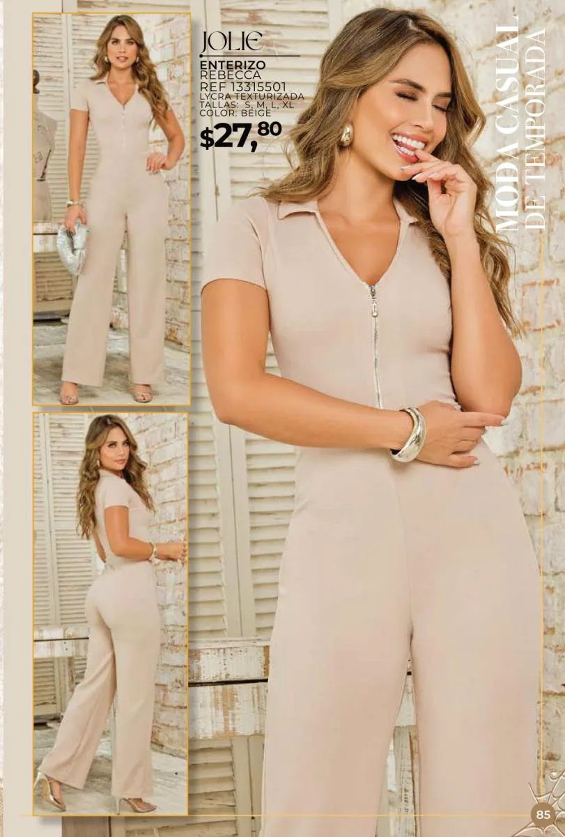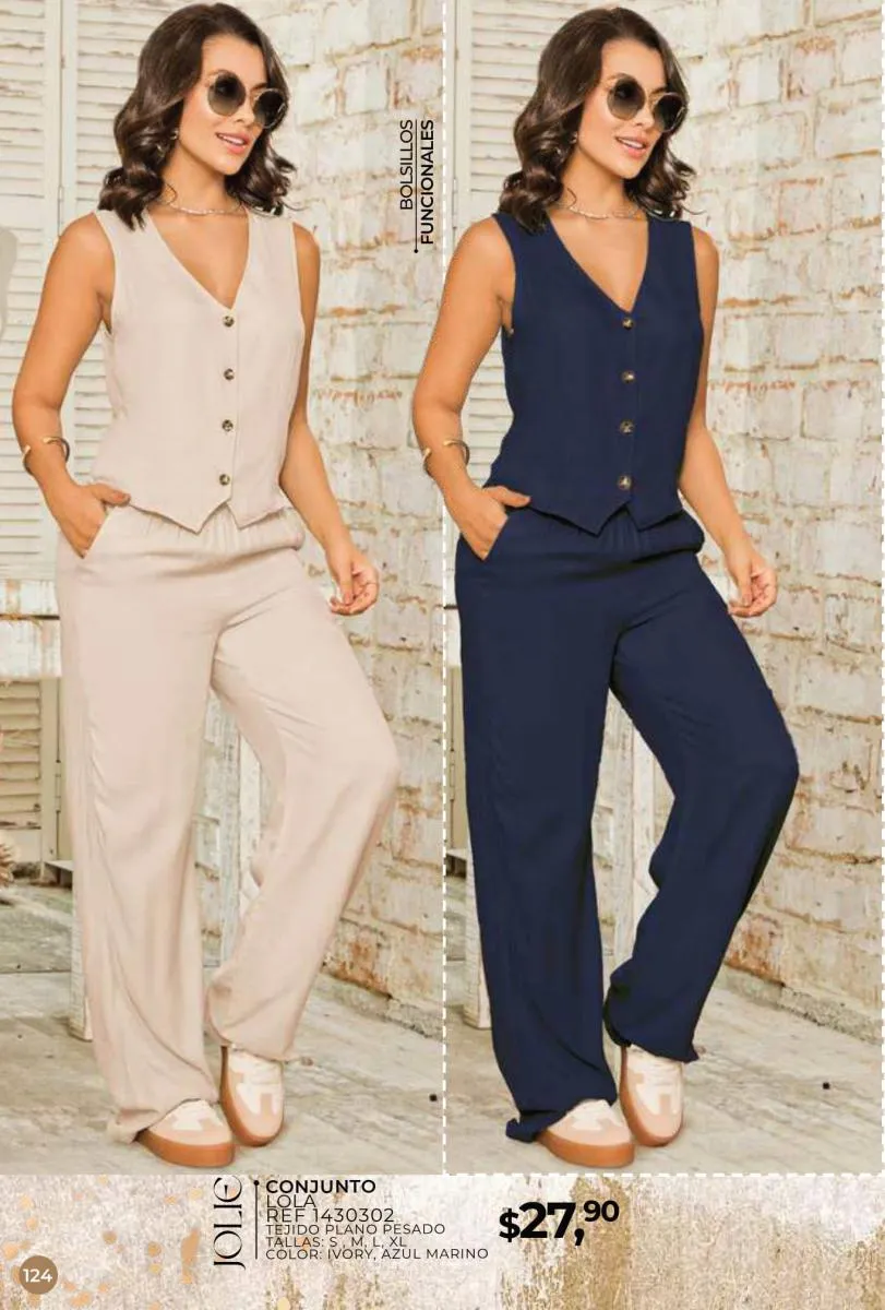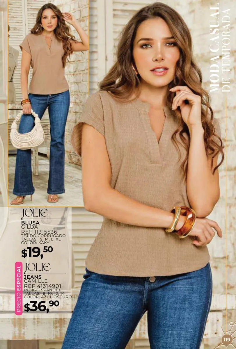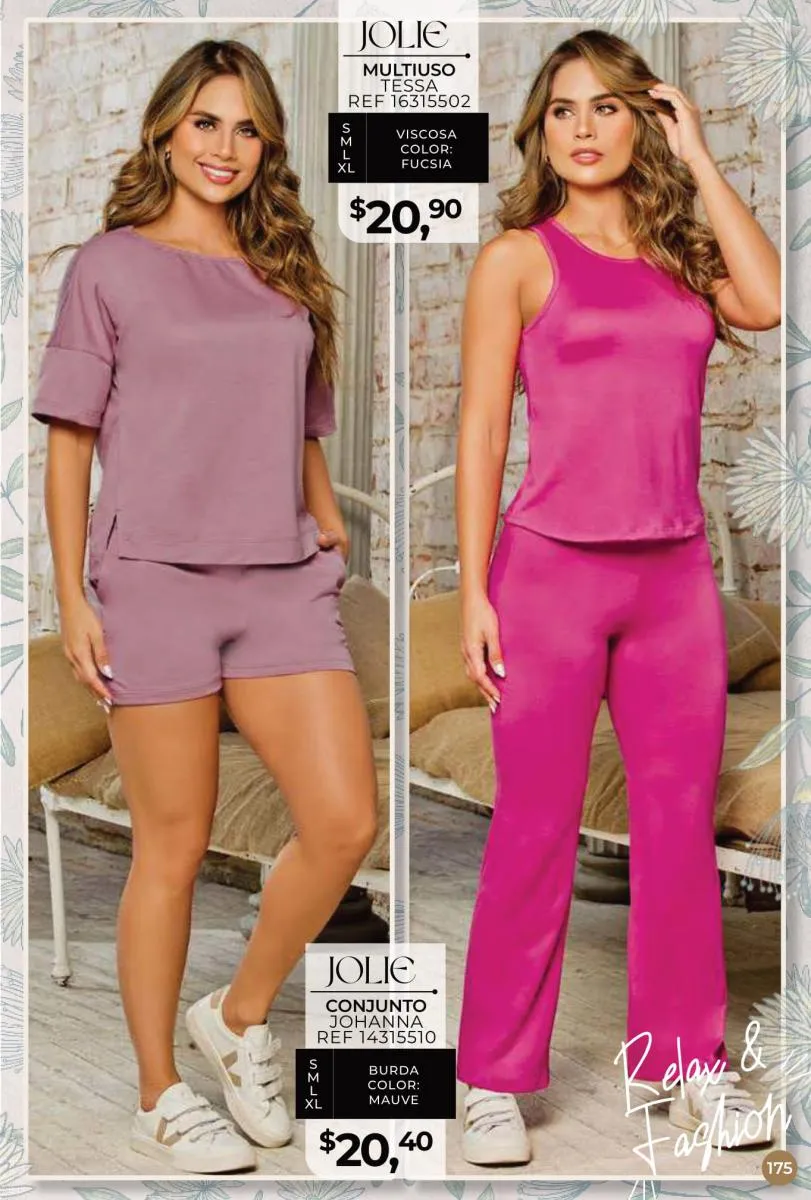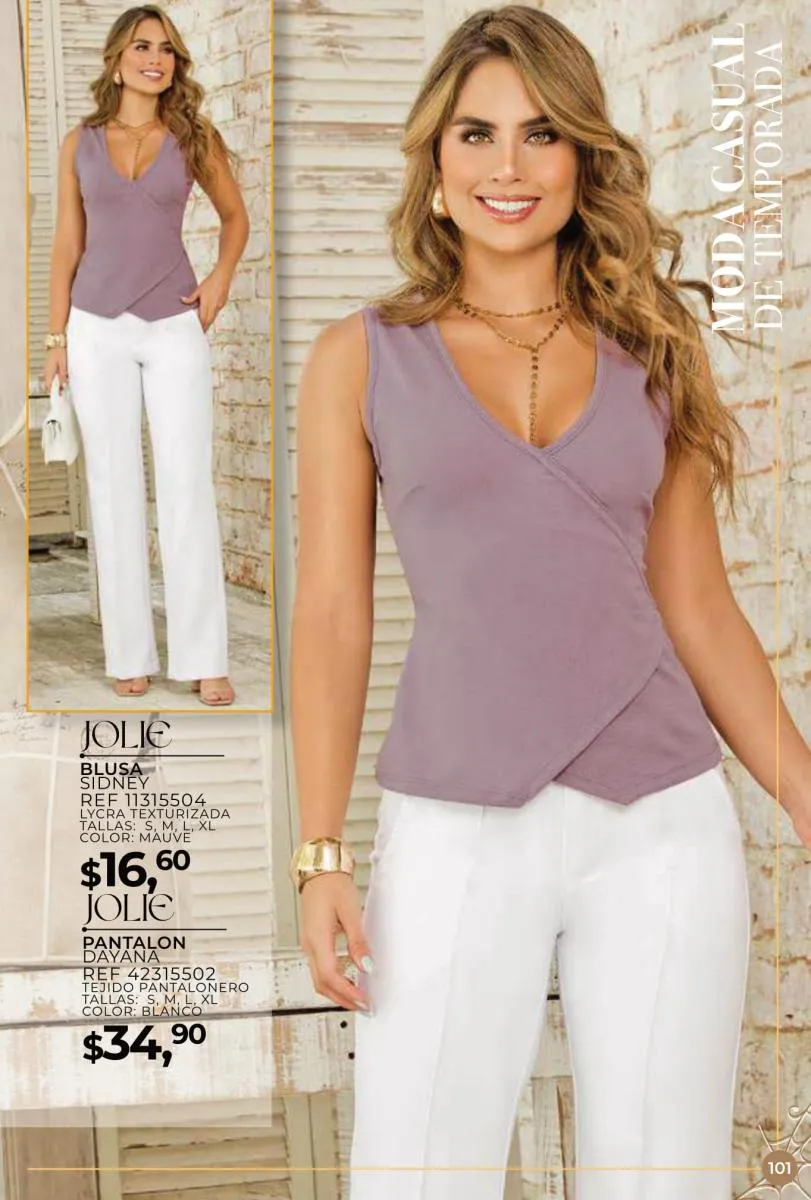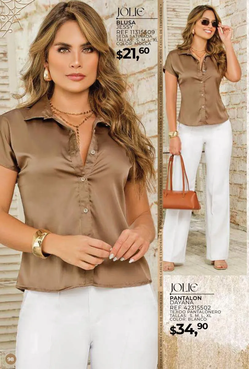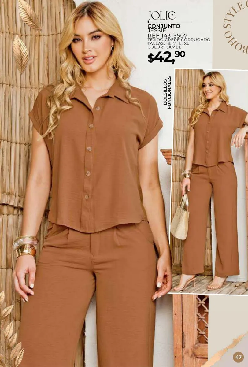 Una de las principales propuestas del Jolie campaña 15 2025 son los conjuntos casuales, perfectos para llevar en cualquier ocasión. Los pantalones de cintura alta combinados con blusas de mangas largas o cortas ofrecen una comodidad excepcional sin perder el toque de sofisticación. Los diseños se adaptan tanto a un día de trabajo como a una salida informal con amigos o familiares. Además, los materiales ligeros y frescos garantizan confort todo el día.
