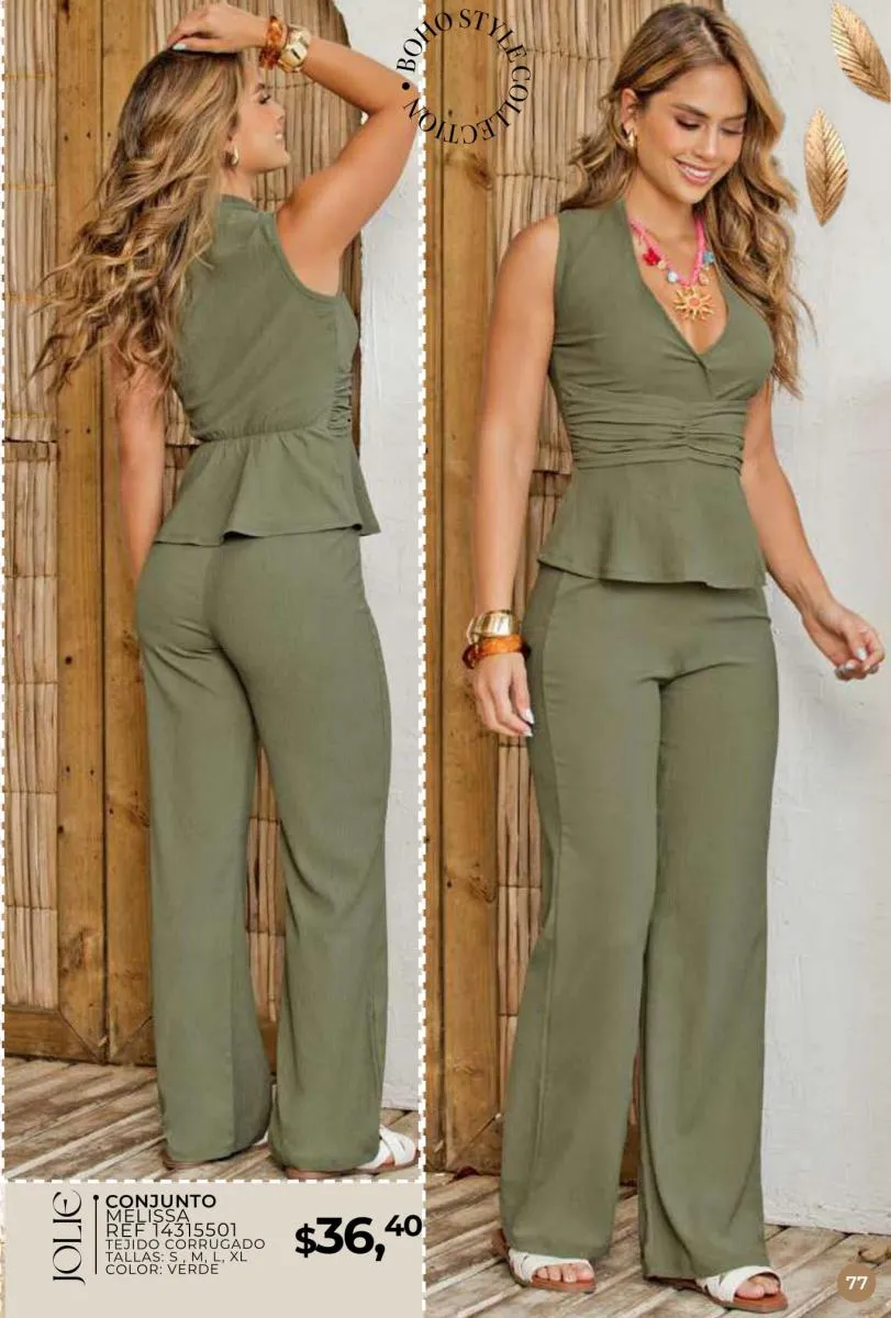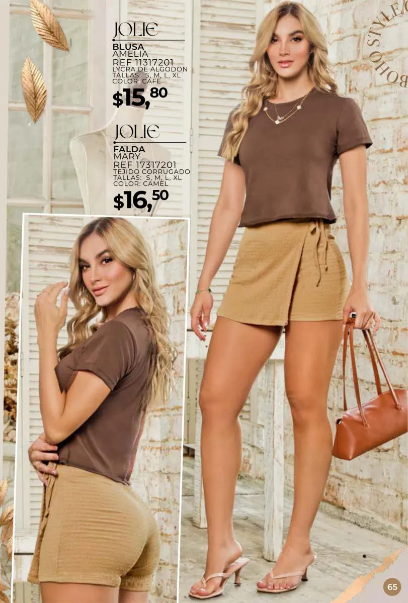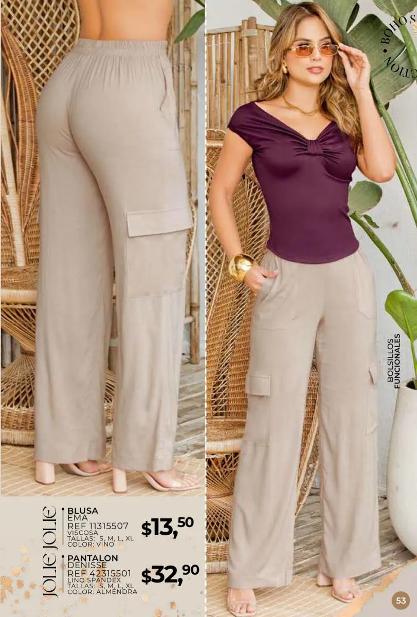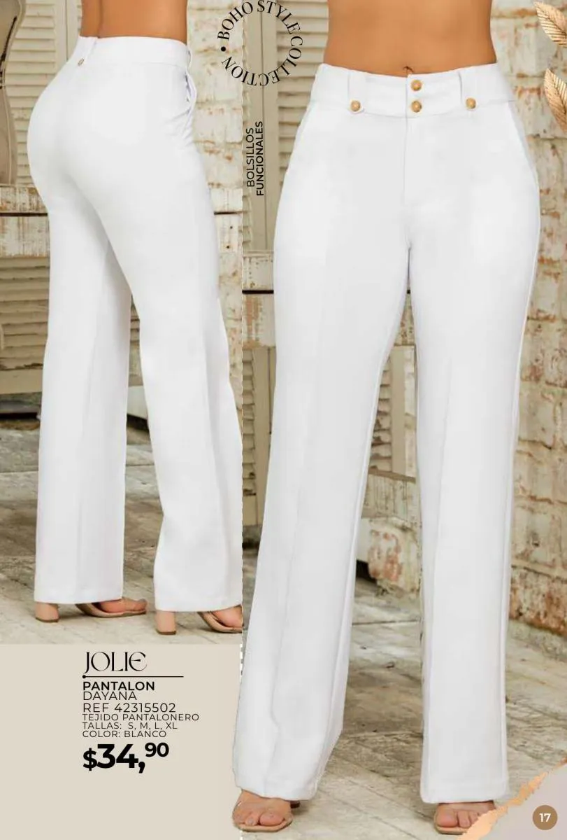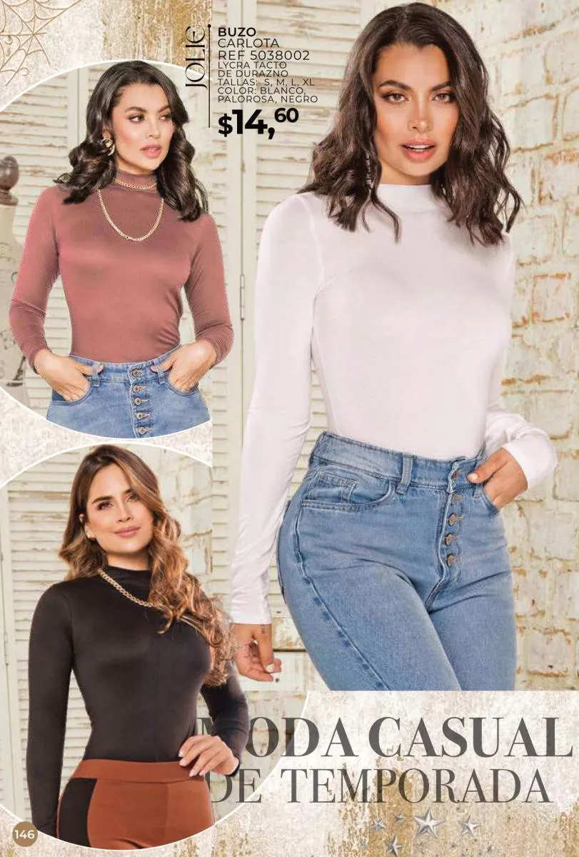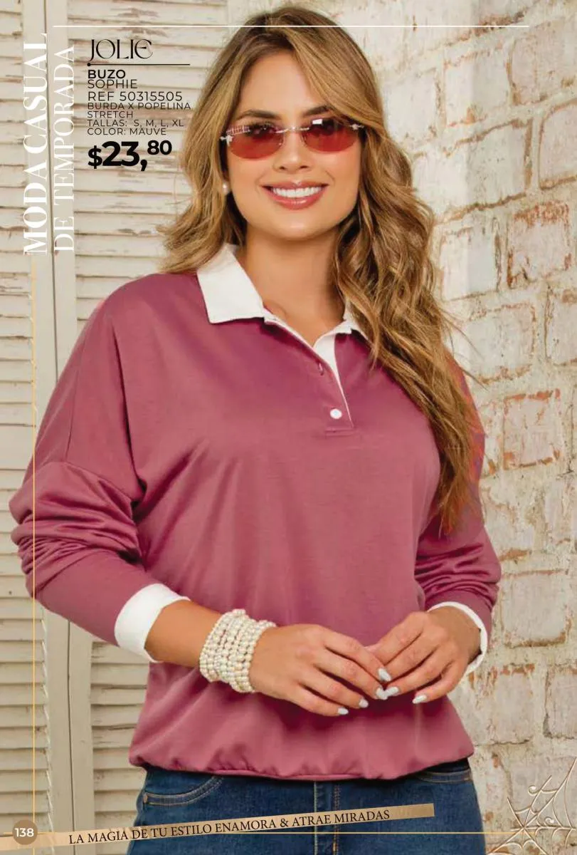 Una de las principales propuestas del Jolie campaña 15 2025 son los conjuntos casuales, perfectos para llevar en cualquier ocasión. Los pantalones de cintura alta combinados con blusas de mangas largas o cortas ofrecen una comodidad excepcional sin perder el toque de sofisticación. Los diseños se adaptan tanto a un día de trabajo como a una salida informal con amigos o familiares. Además, los materiales ligeros y frescos garantizan confort todo el día.