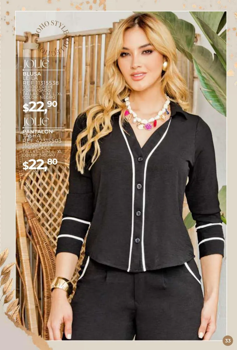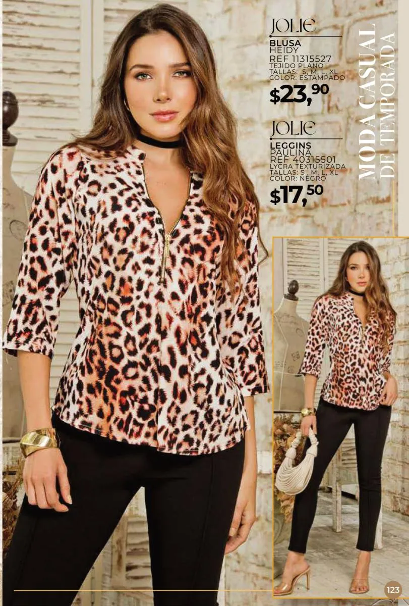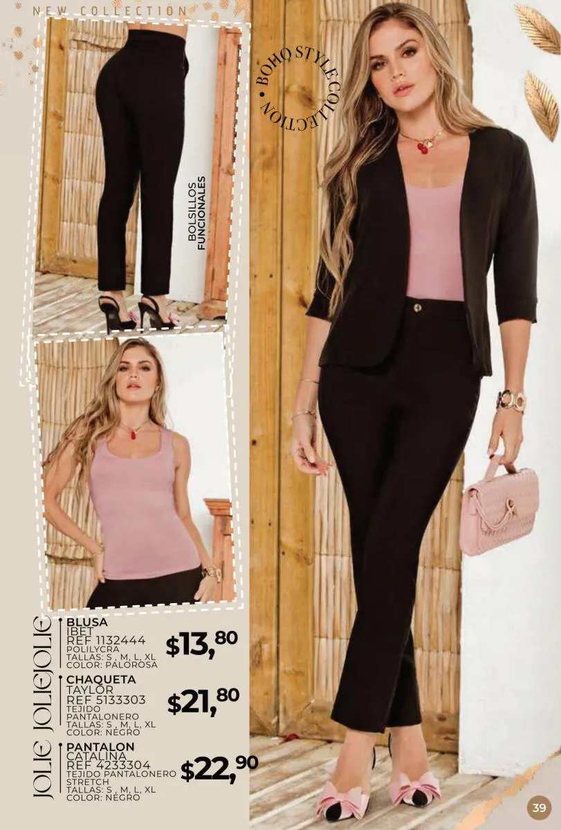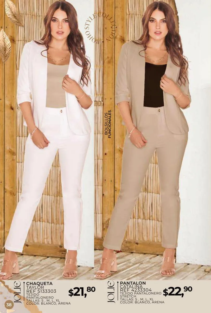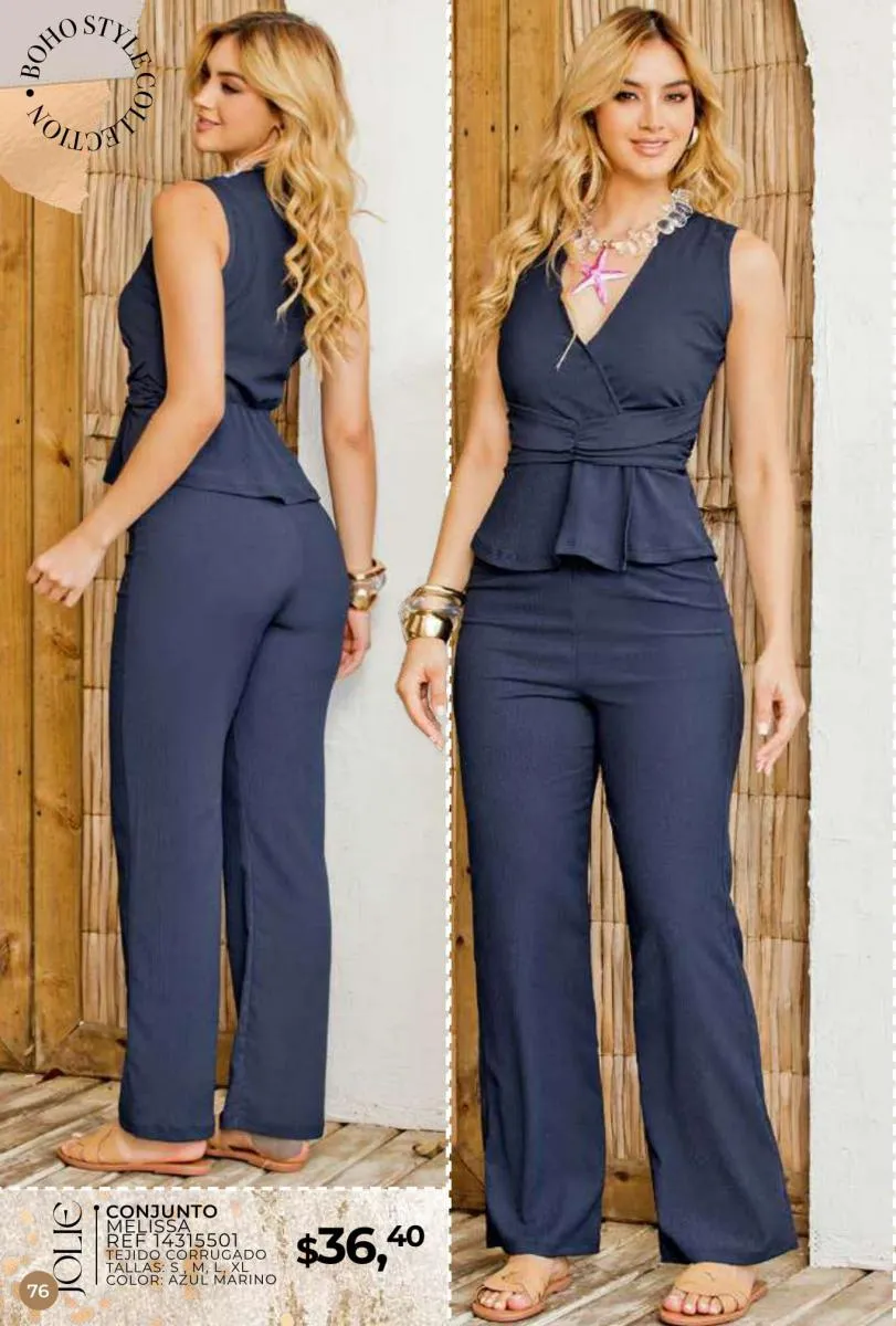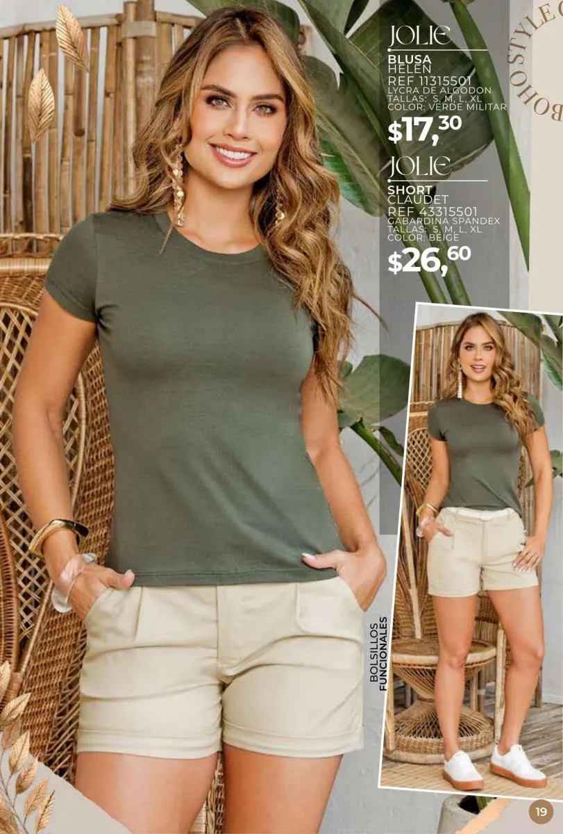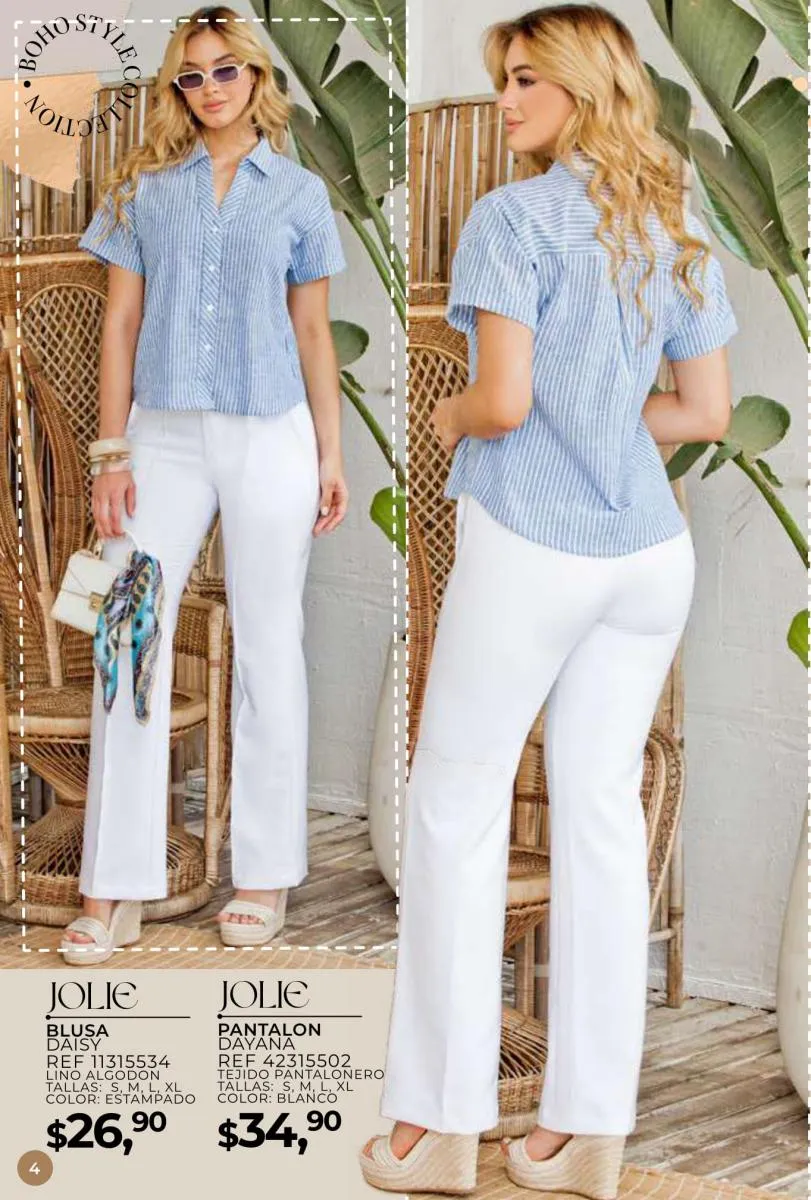 Una de las principales propuestas del Jolie campaña 15 2025 son los conjuntos casuales, perfectos para llevar en cualquier ocasión. Los pantalones de cintura alta combinados con blusas de mangas largas o cortas ofrecen una comodidad excepcional sin perder el toque de sofisticación. Los diseños se adaptan tanto a un día de trabajo como a una salida informal con amigos o familiares. Además, los materiales ligeros y frescos garantizan confort todo el día.