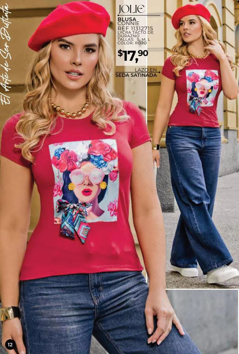 Si un color lo veremos en diversas prendas en esta Jolie campaña 16 2025, ese es el rojo. ¿Qué piezas resultan las más llamativas para considerar en este catálogo? Veamos: