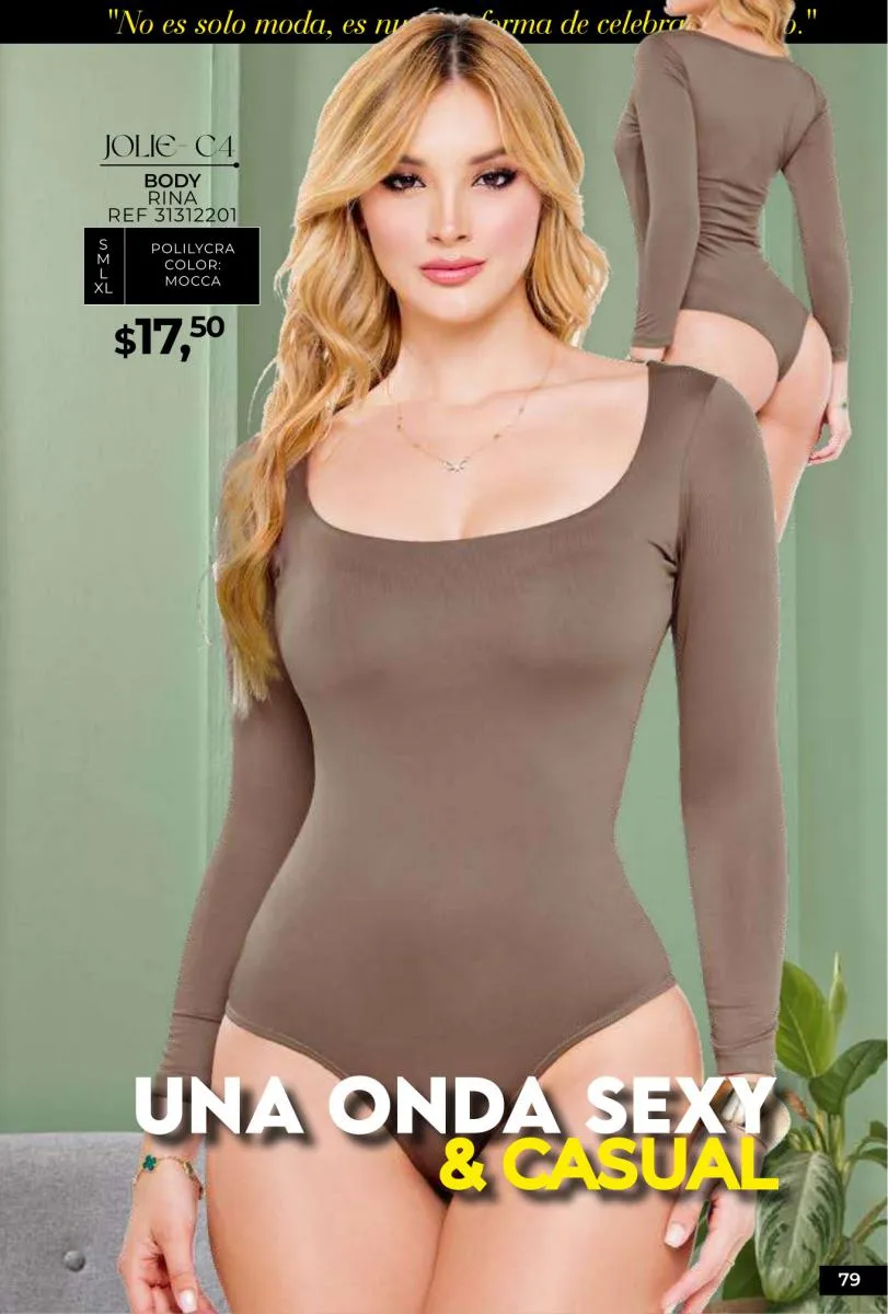 - Y si de detalles sexys y funcionales se trata, un body resulta una pieza muy práctica para combinar con cualquier prenda inferior. La sugerencia es la de color vino “Brenda”, de la página 78.