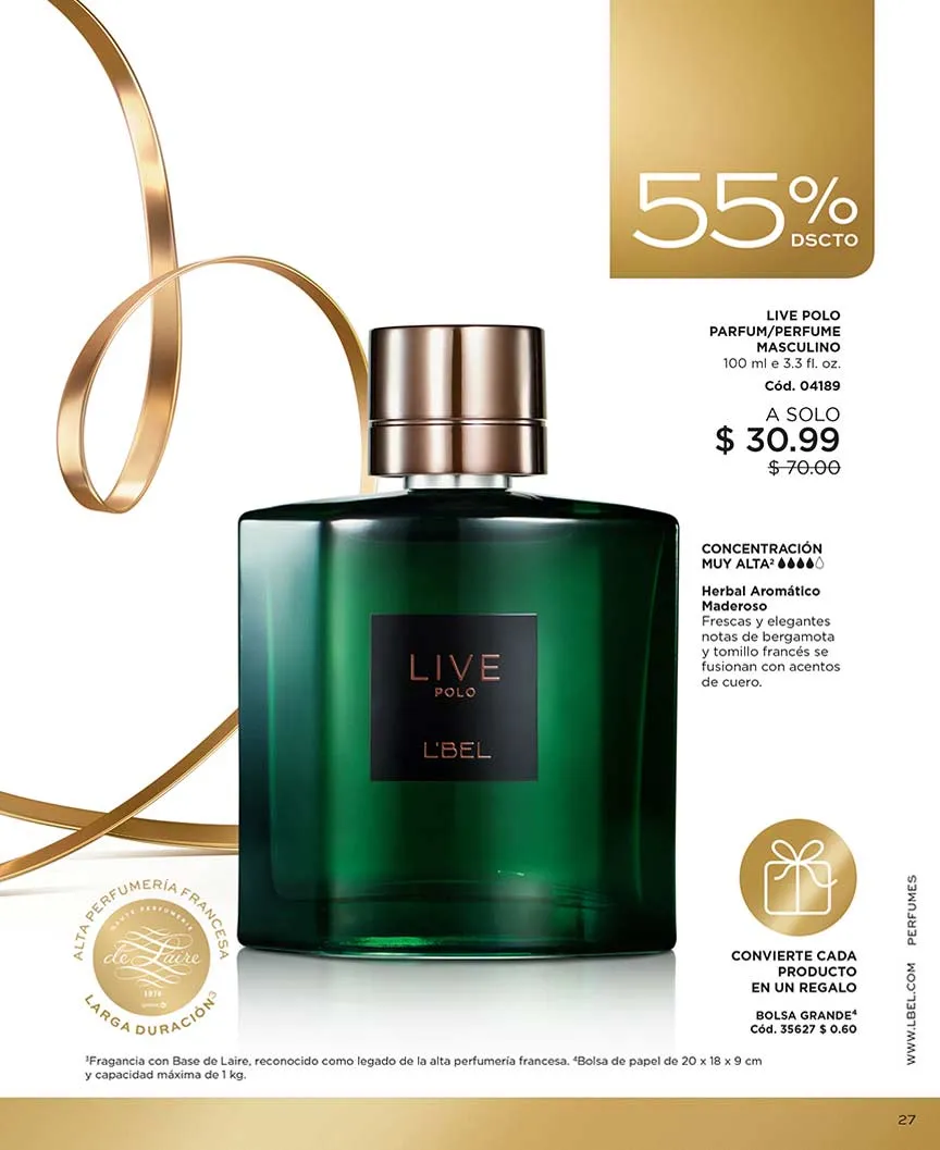 - L’Bel Signature parfum de 100ml fragancia herbal aromática concentración muy alta. Por la compra de esta fragancia te llevas gratis: