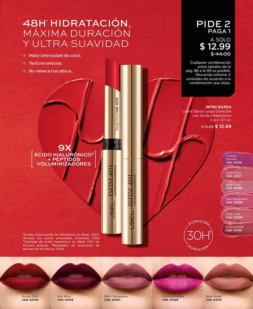 - Infini; labial de 2g 16h hidratación tono Rouge +