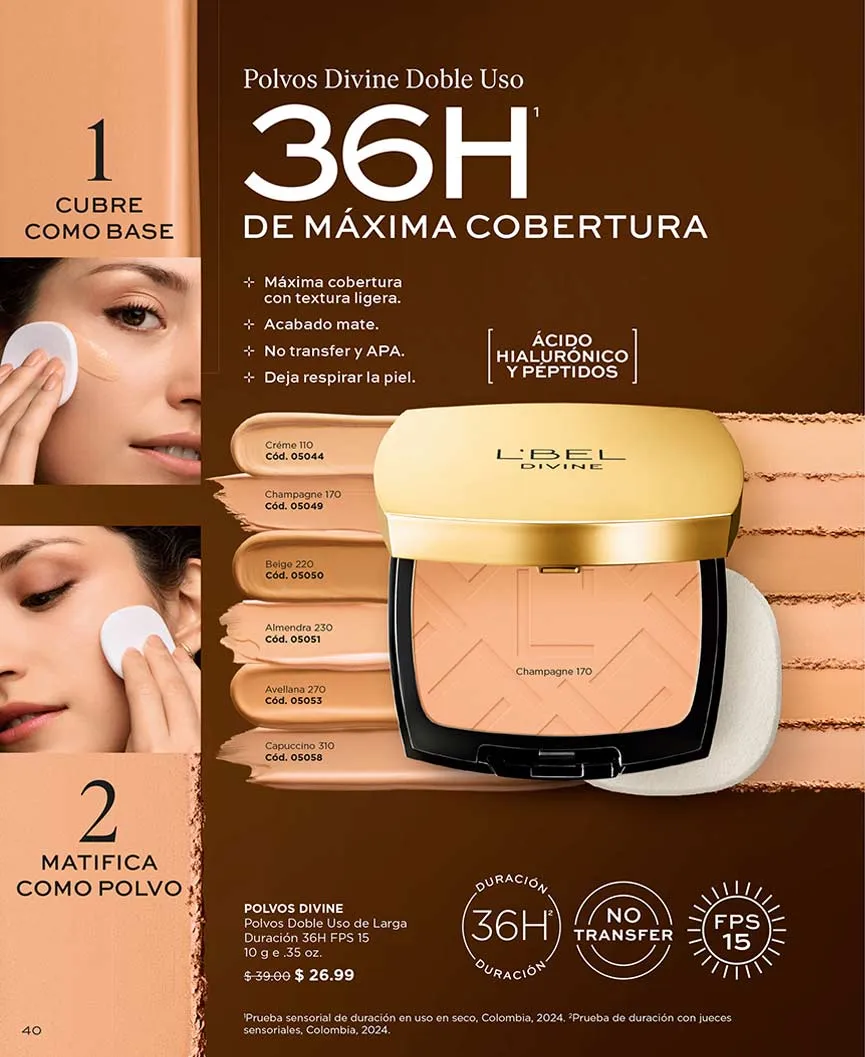 • Define polvo compacto de 10g doble uso con FPS 15 con estuche dorado Edición limitada, tono médium.