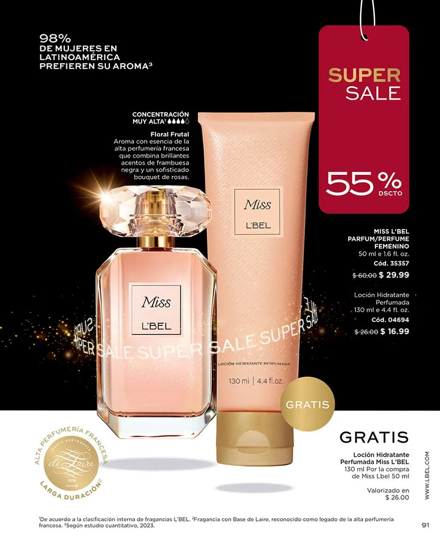 - Parfum L’Bel Signature de 100ml fragancia herbal aromática de concentración muy alta. Por la compra de esta fragancia llevas gratis: