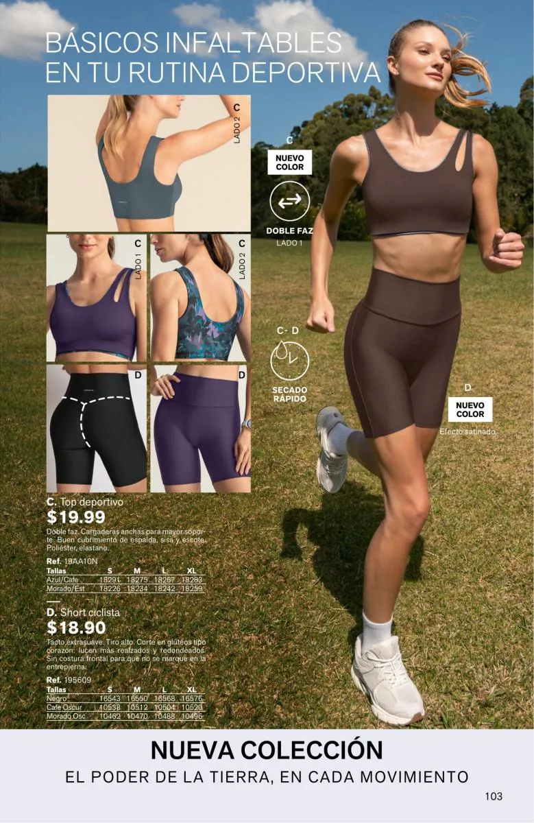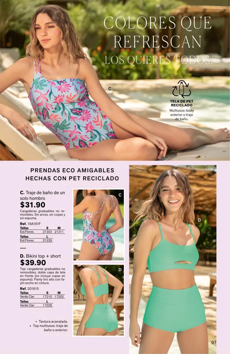 En esta campaña, los trajes de baño son otra de las piezas que no debes dejar pasar para lucir encantadora y más a la luz de los rayos del sol. Nuestra recomendación es revisar las páginas 79 en adelante para elegir tu prenda favorita (bikini y top ECO, short alto o falda playera) y darle a tu piel ese bronceado que te hará resaltar más que nunca.