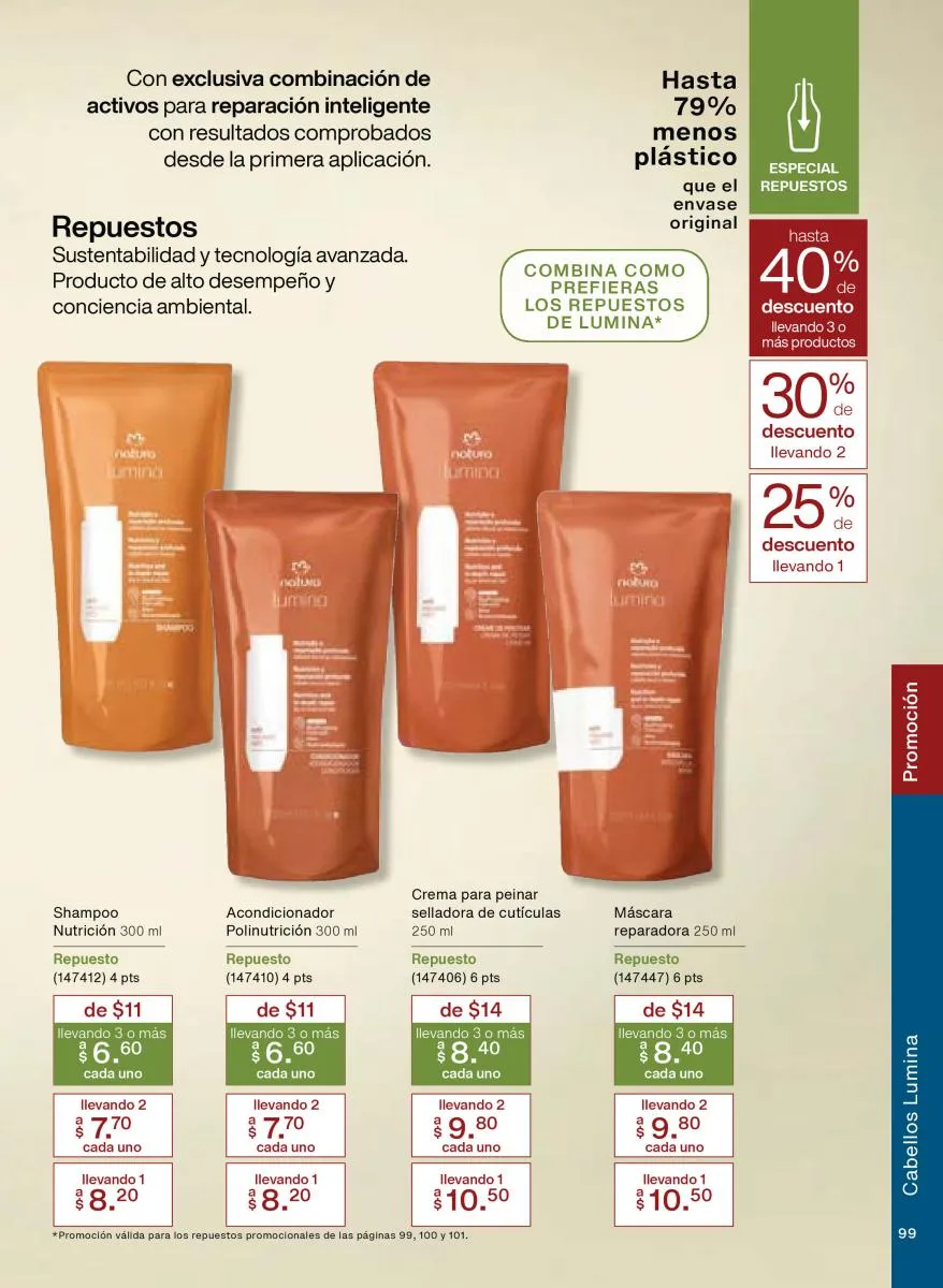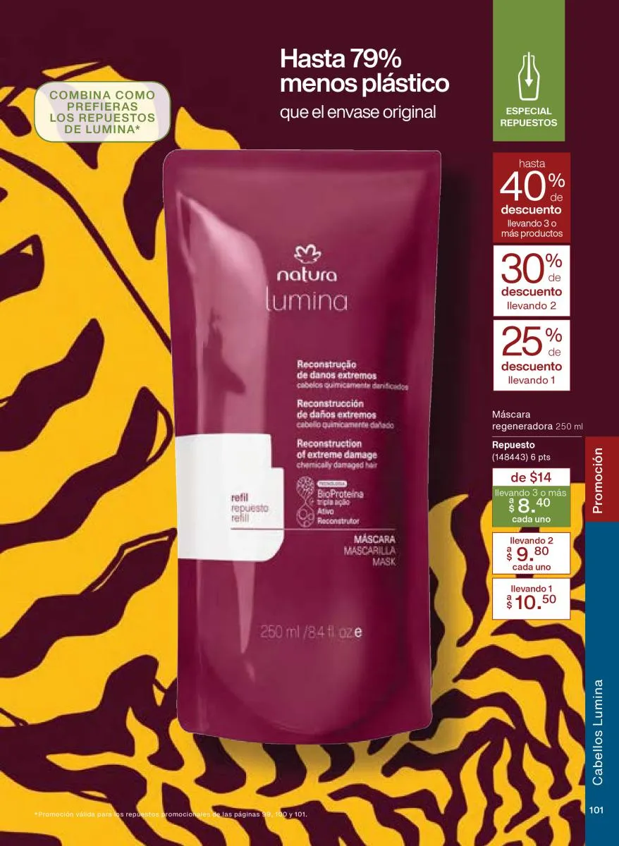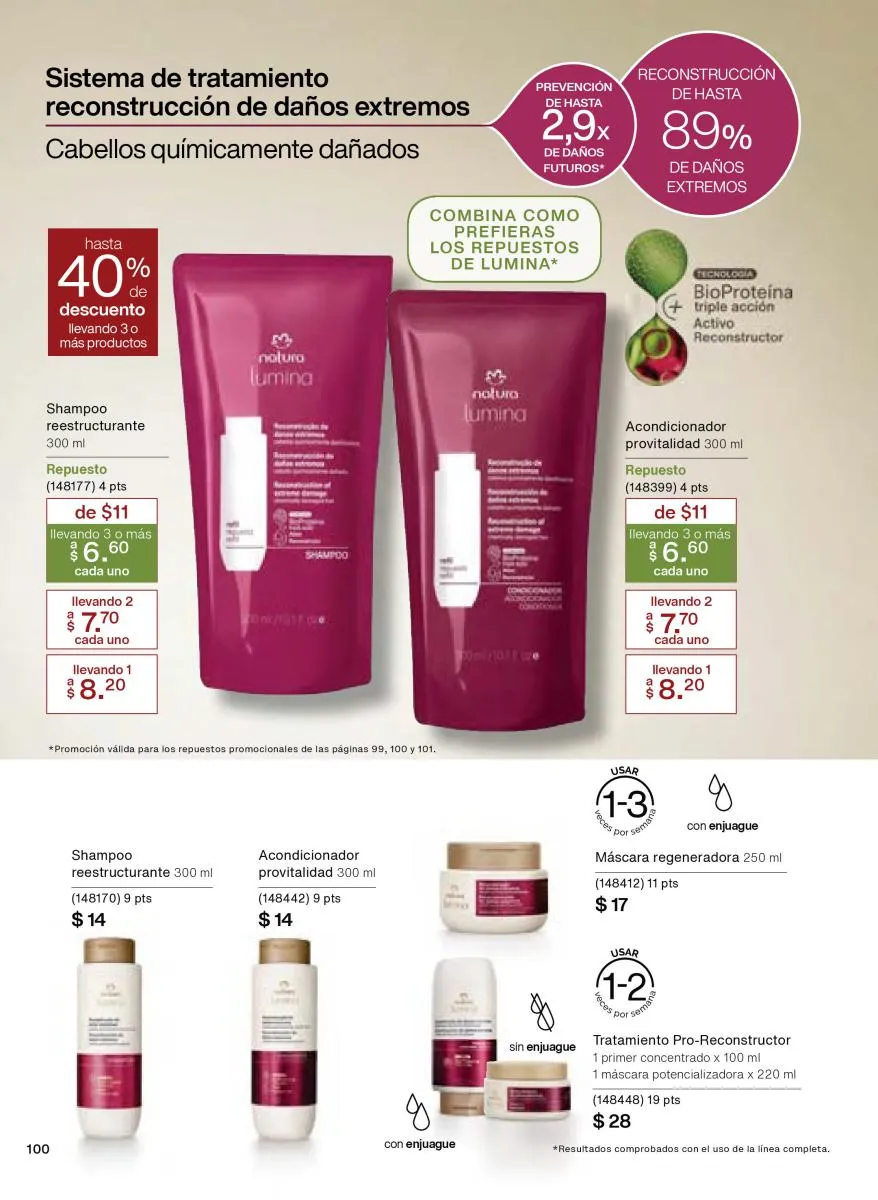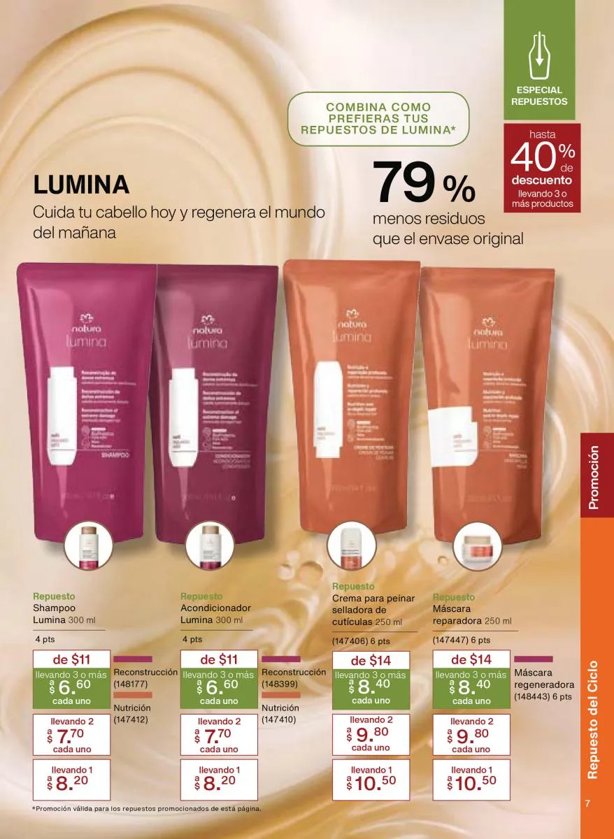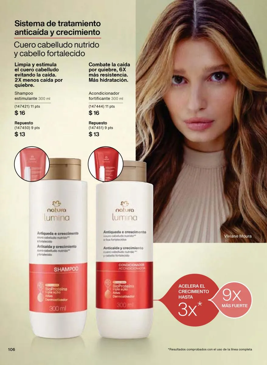 En cuanto al cuidado capilar, Natura Lumina propone un tratamiento pro-reconstructor pensado para cabellos dañados químicamente. La mascarilla y el concentrado reparador trabajan en conjunto para devolver la fuerza, el brillo y la vitalidad a la fibra capilar desde la raíz hasta las puntas, utilizando la exclusiva tecnología BioProteína.