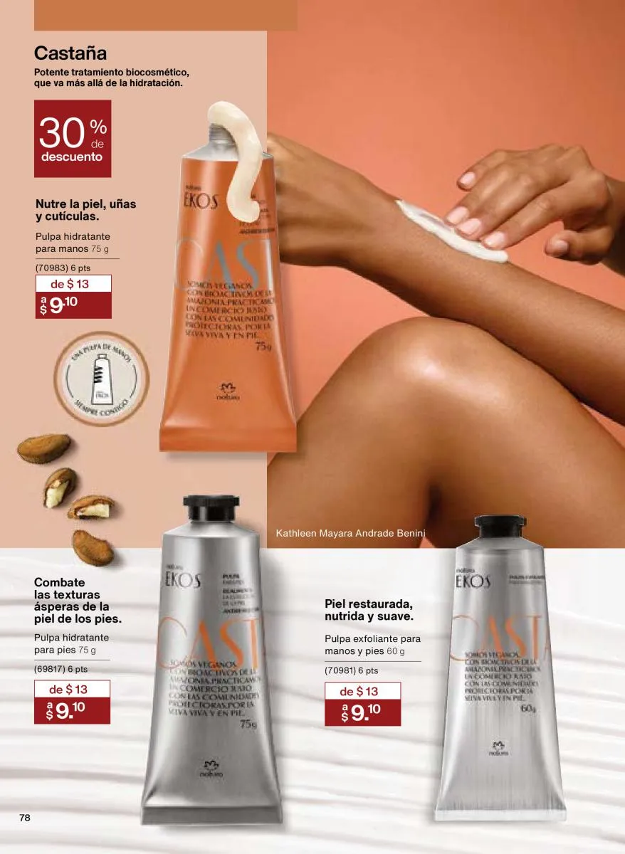 Uno de los grandes protagonistas del catálogo Natura Ciclo 1 2026 Ecuador es sin duda la línea Natura Ekos Manos. Presentada en un empaque atractivo y ecológico, esta colección de cremas veganas está diseñada para brindar un tratamiento biocosmético potente que responde a distintas necesidades cutáneas. Cada fórmula contiene un bioactivo amazónico que hidrata, nutre y protege las manos con una eficacia clínicamente comprobada.