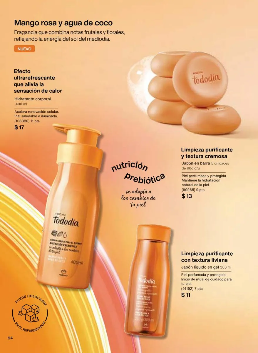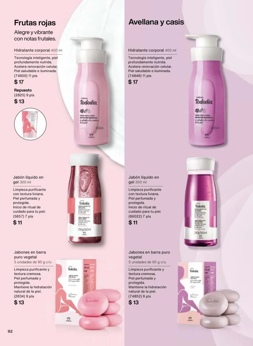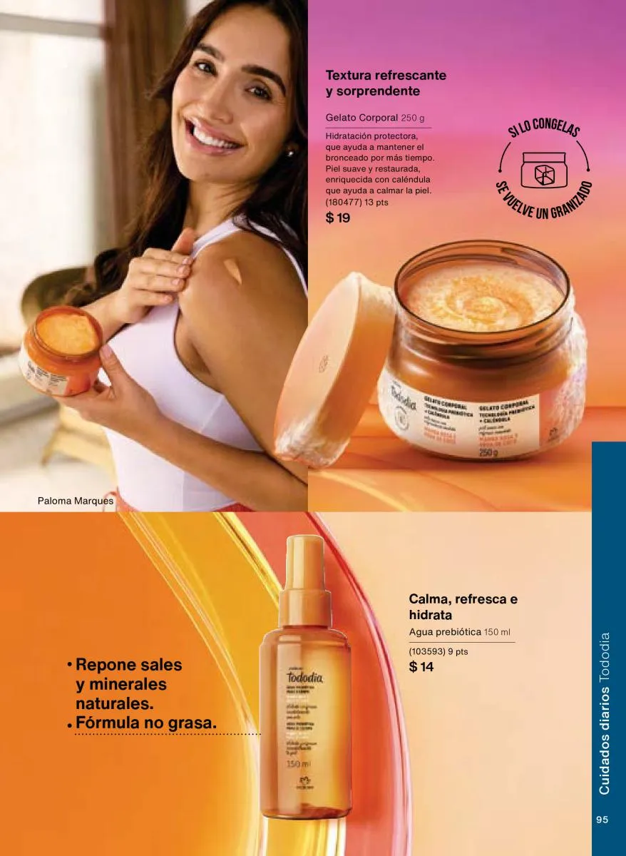 El catálogo también incluye líneas icónicas como Tododia, que en este ciclo ofrece hidratantes corporales con fragancias frutales y fórmulas prebióticas. Son ideales para mantener la piel nutrida durante las vacaciones, reforzando la barrera natural de protección y proporcionando sensaciones placenteras al aplicarlos. La línea viene con descuentos especiales, lo que los convierte en una opción atractiva para cuidar el cuerpo con productos de alta calidad a un precio accesible.