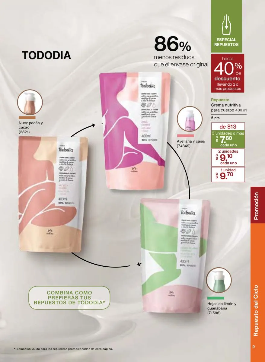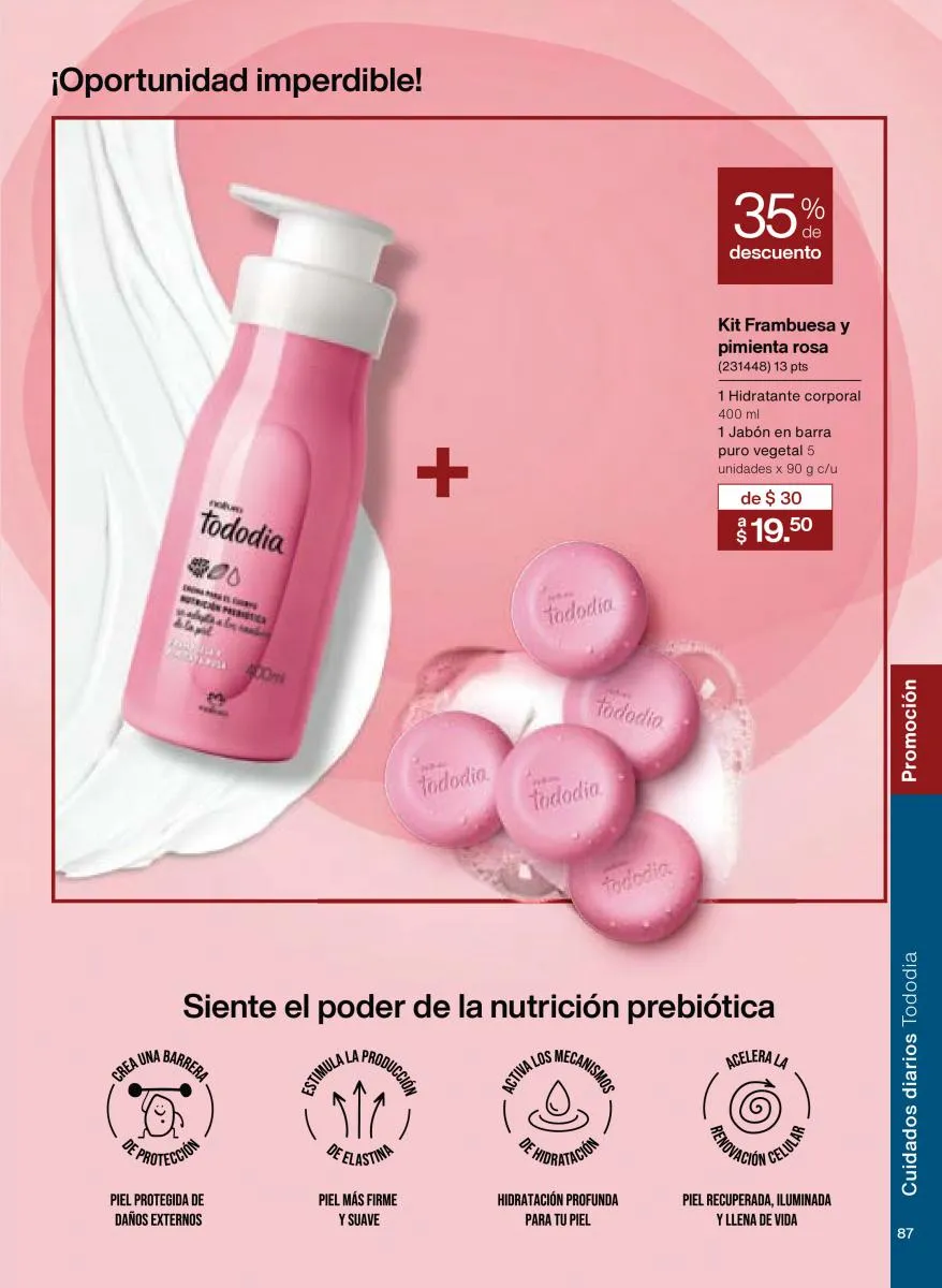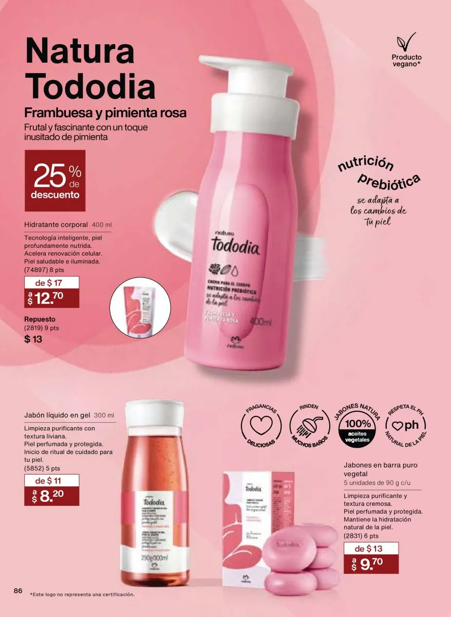 El catálogo también incluye líneas icónicas como Tododia, que en este ciclo ofrece hidratantes corporales con fragancias frutales y fórmulas prebióticas. Son ideales para mantener la piel nutrida durante las vacaciones, reforzando la barrera natural de protección y proporcionando sensaciones placenteras al aplicarlos. La línea viene con descuentos especiales, lo que los convierte en una opción atractiva para cuidar el cuerpo con productos de alta calidad a un precio accesible.