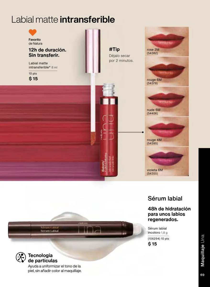 Para quienes prefieren un acabado duradero, el labial matte intransferible es la estrella del Natura ciclo 18 2025. Con una textura mousse y 12 horas de duración sin transferencia, garantiza un look impecable desde la mañana hasta la noche. Se complementa perfectamente con el lápiz PRO labial, que proporciona definición y precisión, mientras que el sérum labial es ideal para regenerar e hidratar profundamente, dejando los labios suaves y con volumen natural en tan solo 48 horas.