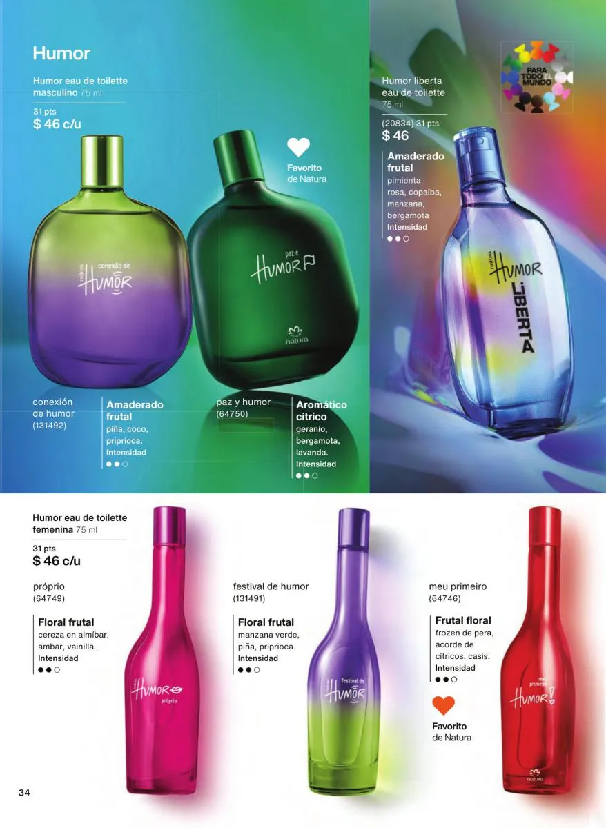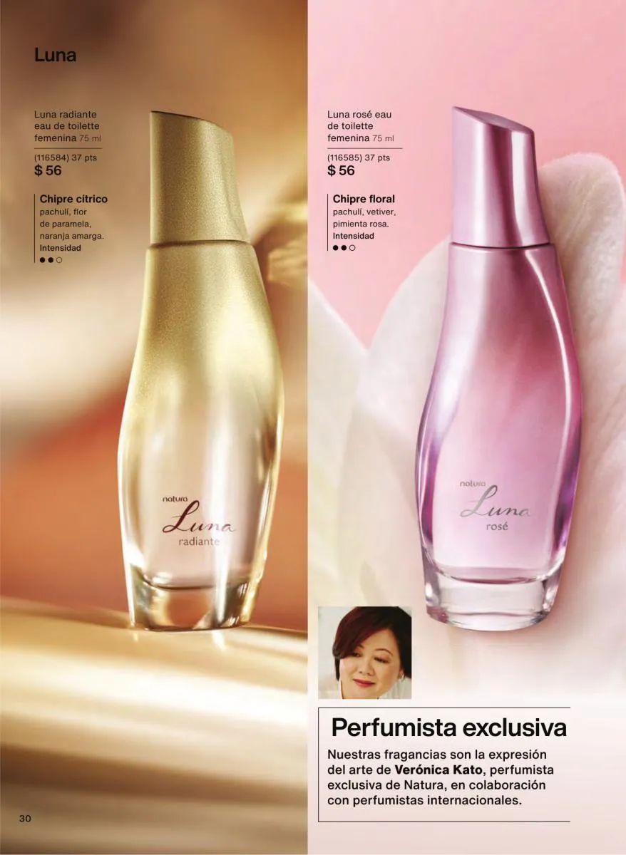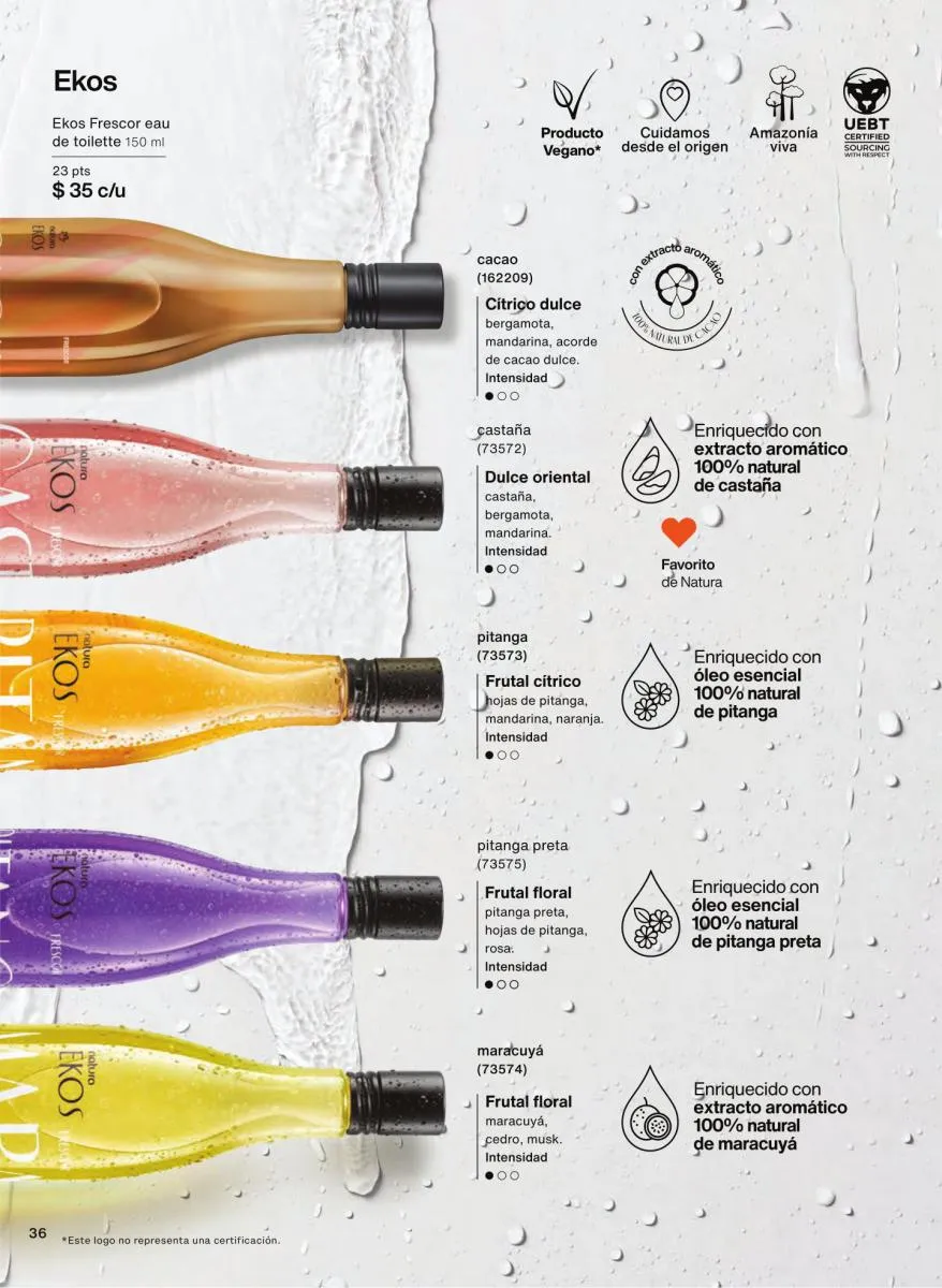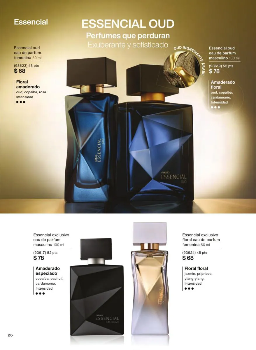 Las fragancias en este catálogo no solo se diferencian por su intensidad o notas aromáticas, sino también por su mensaje. Desde esencias inspiradas en la sensualidad femenina hasta propuestas masculinas con fuerza y carácter, cada botella cuenta una historia única. Además, los envases reciclables, el uso de alcohol orgánico y el diseño intuitivo de los frascos refuerzan el compromiso de Natura con el medioambiente y la innovación responsable.