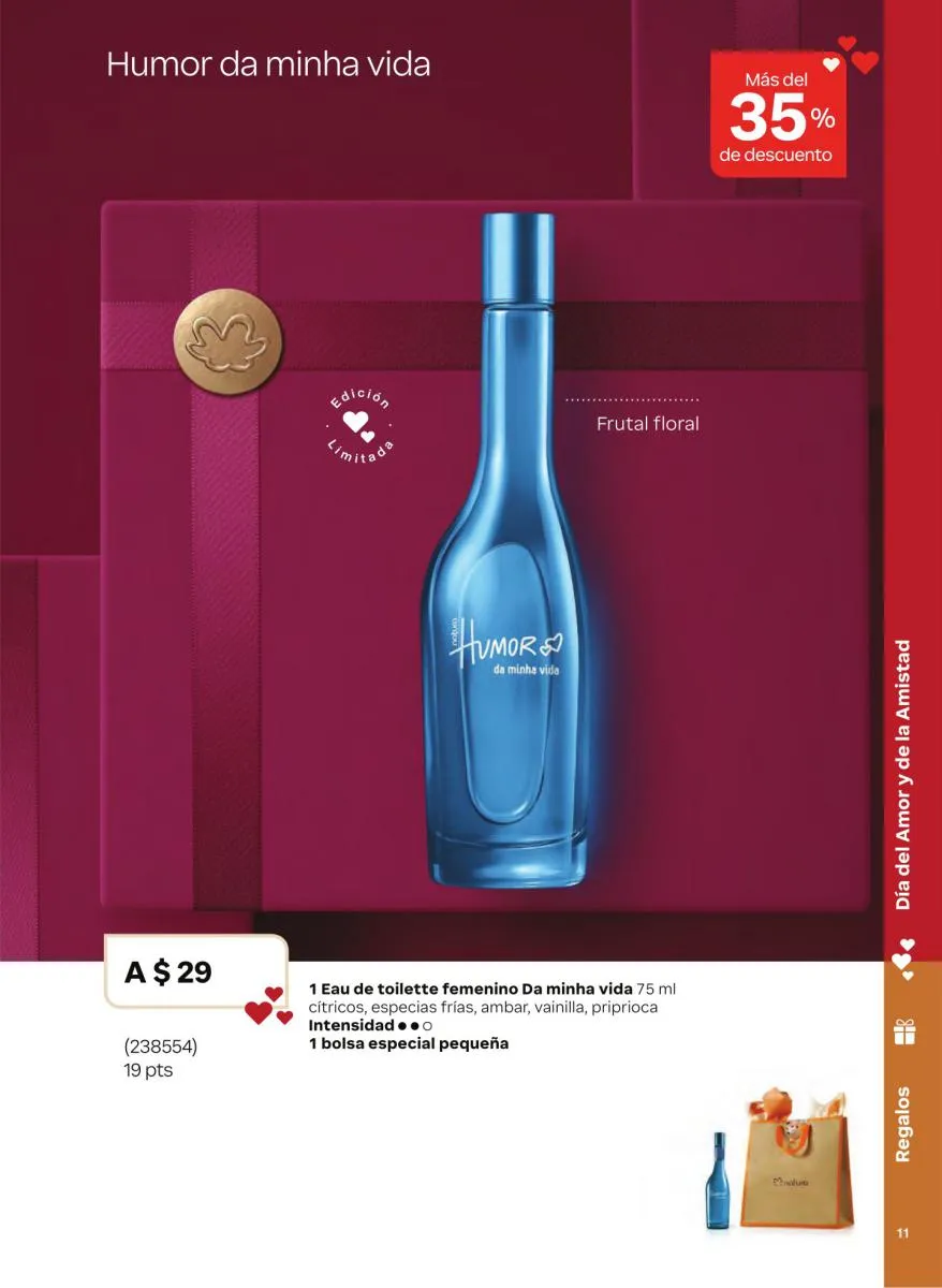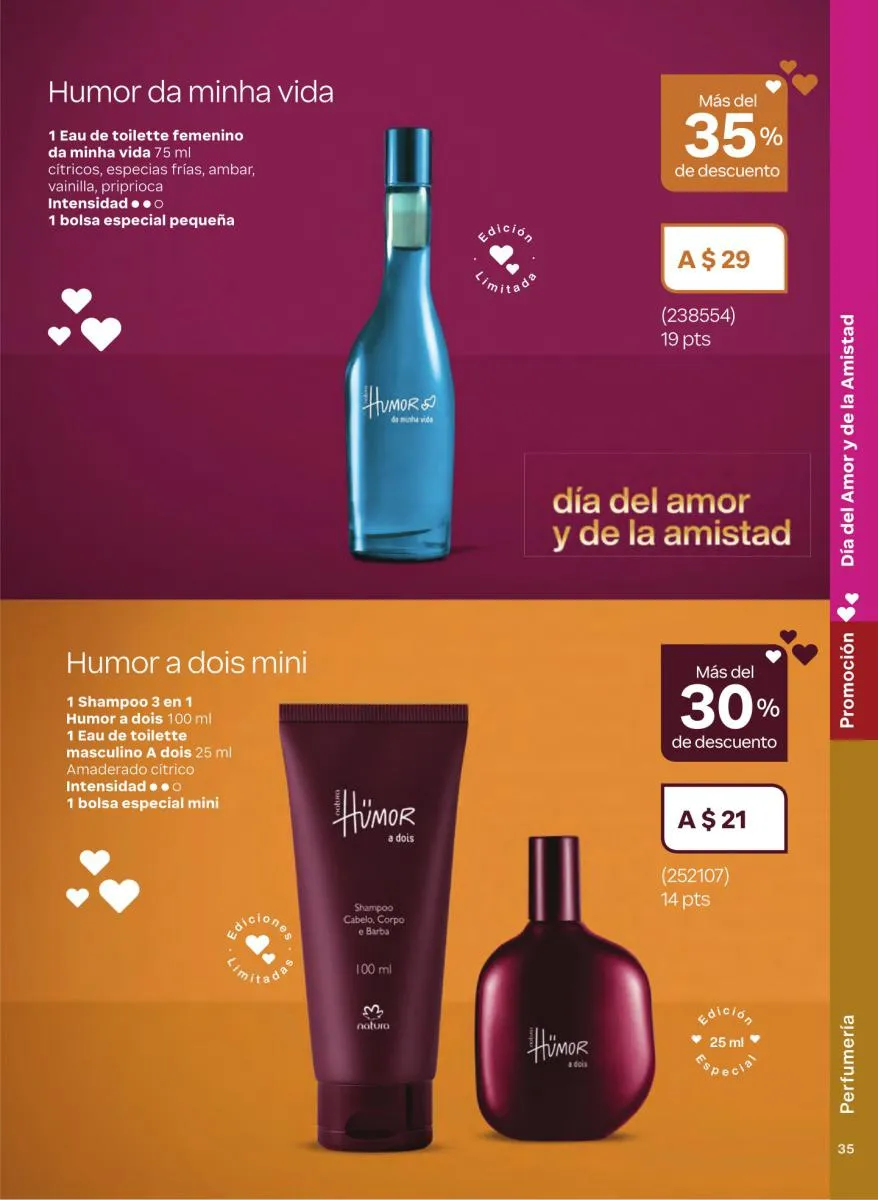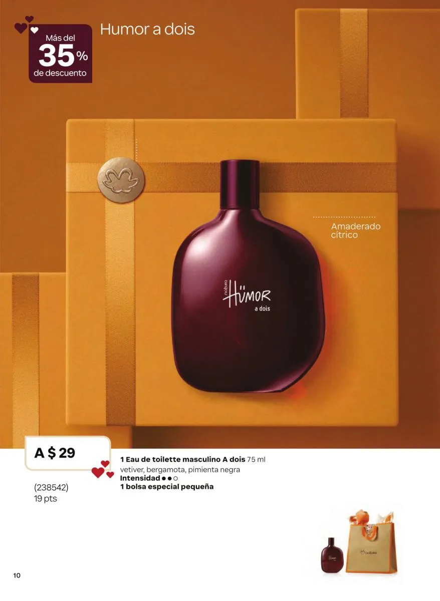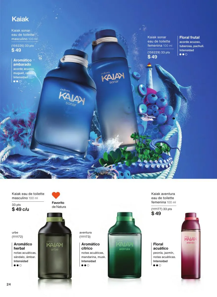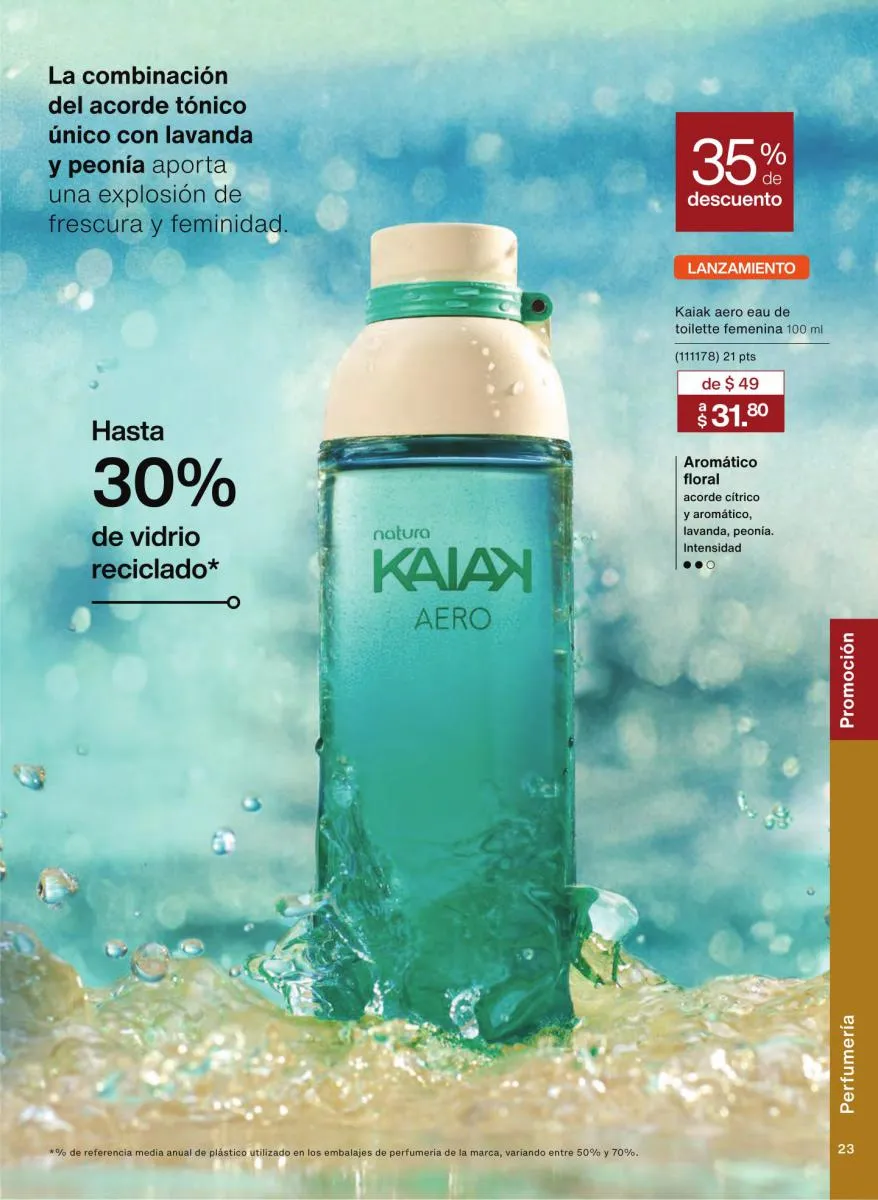 Las fragancias en este catálogo no solo se diferencian por su intensidad o notas aromáticas, sino también por su mensaje. Desde esencias inspiradas en la sensualidad femenina hasta propuestas masculinas con fuerza y carácter, cada botella cuenta una historia única. Además, los envases reciclables, el uso de alcohol orgánico y el diseño intuitivo de los frascos refuerzan el compromiso de Natura con el medioambiente y la innovación responsable.
