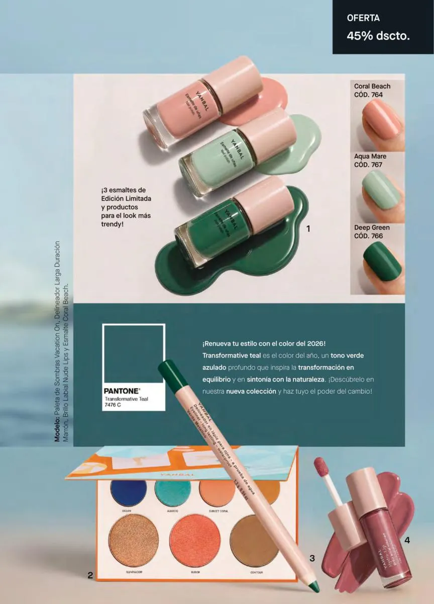 Desde la página 50 de este catálogo Yanbal 1 2025 Ecuador puedes disfrutar del mayor despliegue de color en tu maquillaje favorito. No dudes en incluir tus labiales, esmaltes, bases o rímel más duradero en este mes que trae energía en todas las presentaciones y formas.