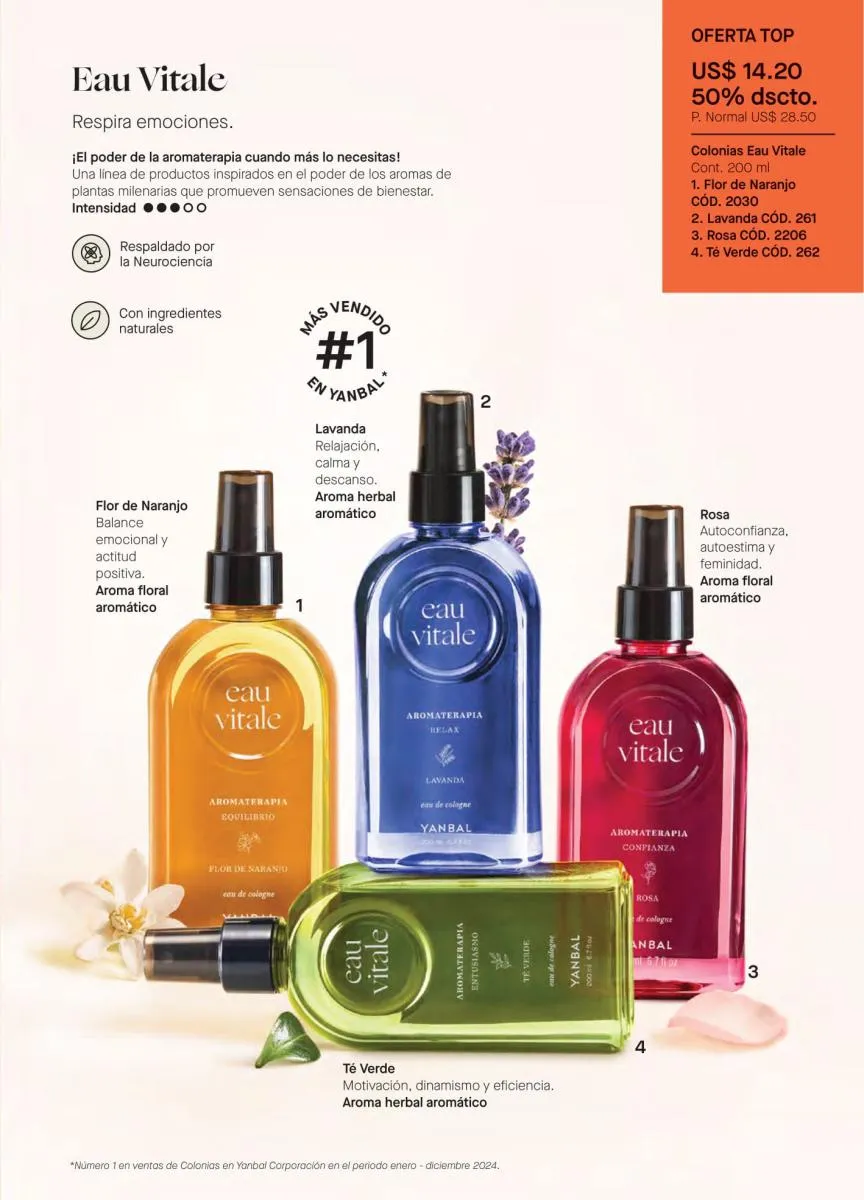 Cuando de sentir la mejor de las vibras se trata, Yanbal tiene unos productos especiales para ello: las eau de cologne y gel de baño Eau Vitale. Búscalos en su presentación de Té Verde, Lavanda y Neroli desde la página 48.