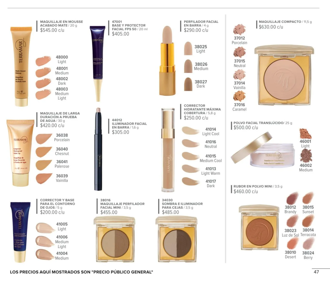 Lo primero que nos muestra este Terramar Brands folleto Diciembre 2025 en la línea de maquillaje de la marca. Para este mes hay que lucir espectacular en cada salida y reunión y nada mejor que productos de calidad para lucir espectacular.