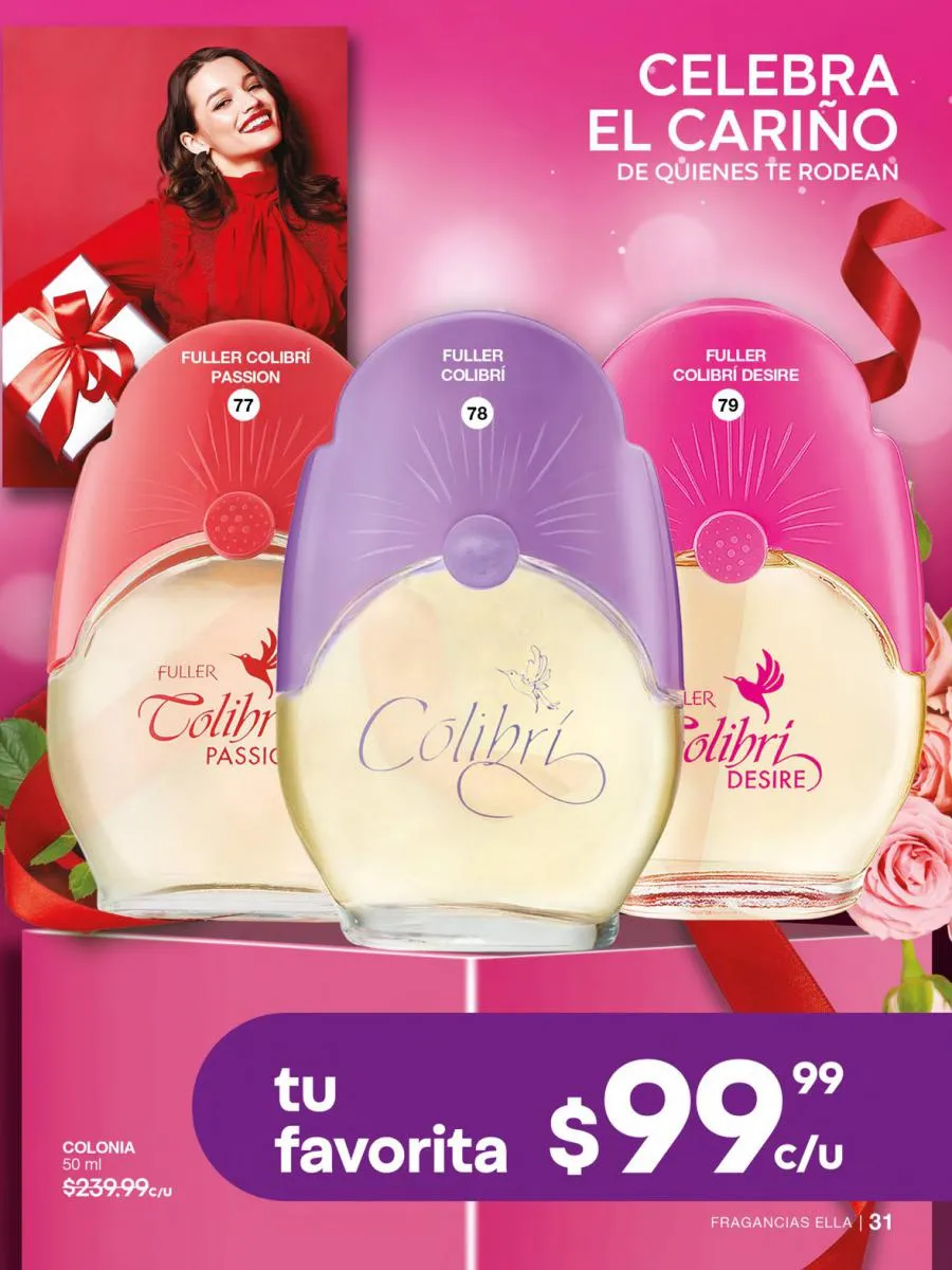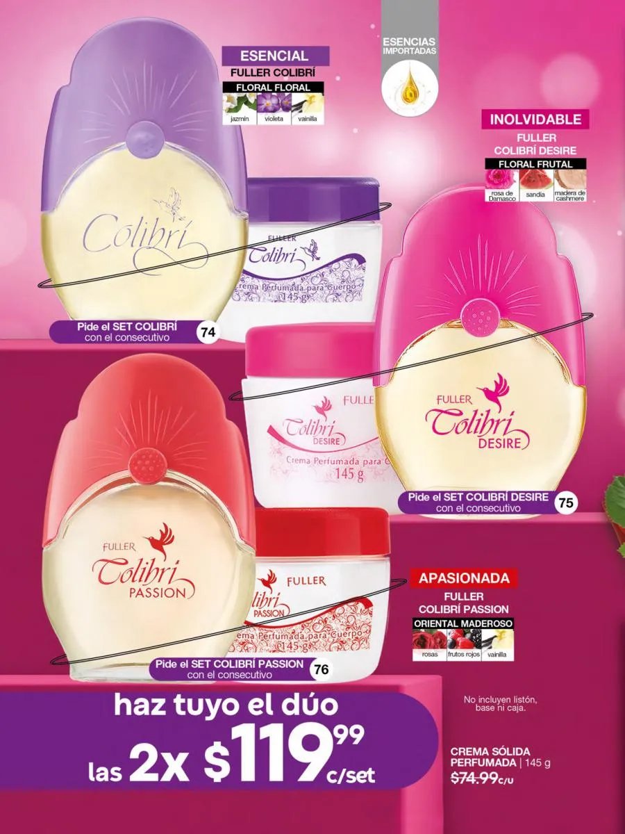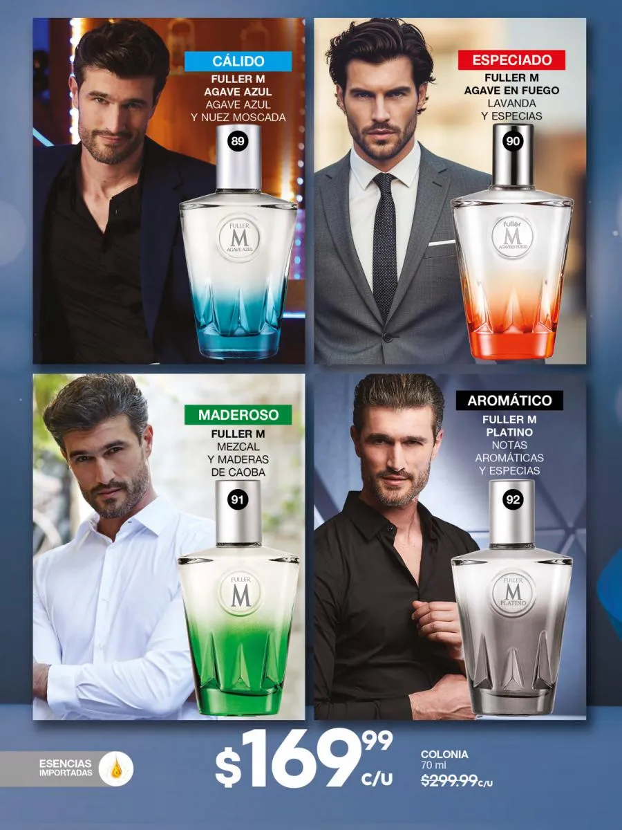 ¿El precio? Más que adecuado para esta campaña: $299,99 c/u. imperdible en tu repertorio de fragancias favoritas.
