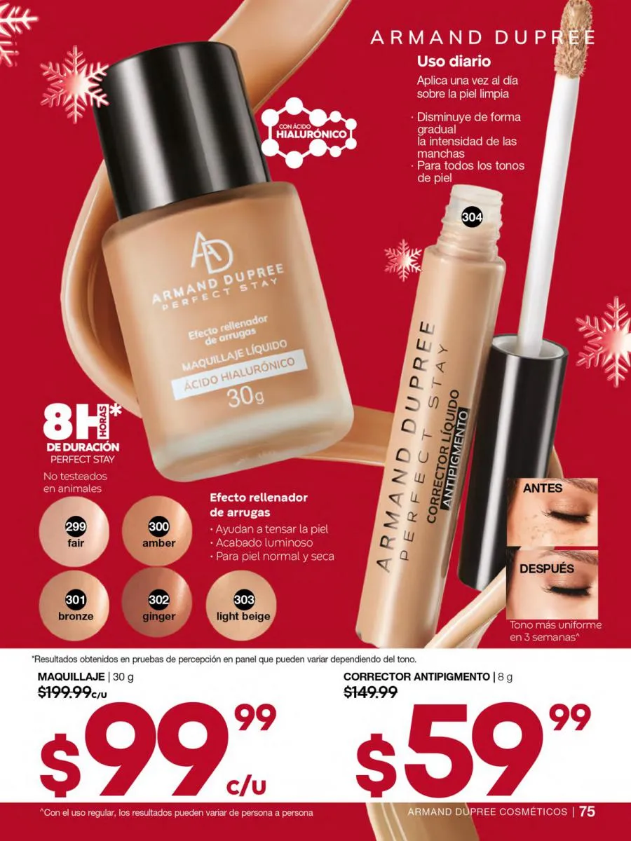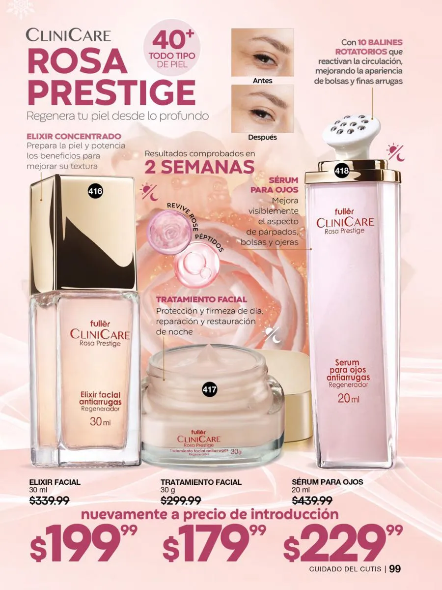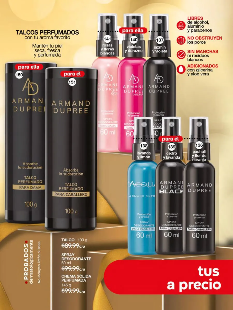 ¿El precio? Más que adecuado para esta campaña: $299,99 c/u. imperdible en tu repertorio de fragancias favoritas.