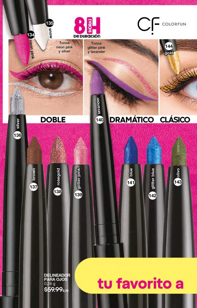 Revisa estos y otros productos más (sombras en polvo, bases, esmaltes, máscara para pestañas) de tus marcas favoritas (Fulgurance o CF) con los mejores precios que te permitirán llevarlo todo. Desde la página 43.