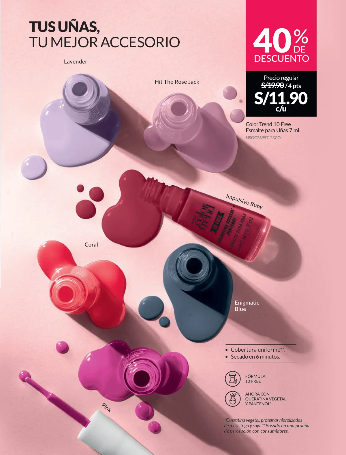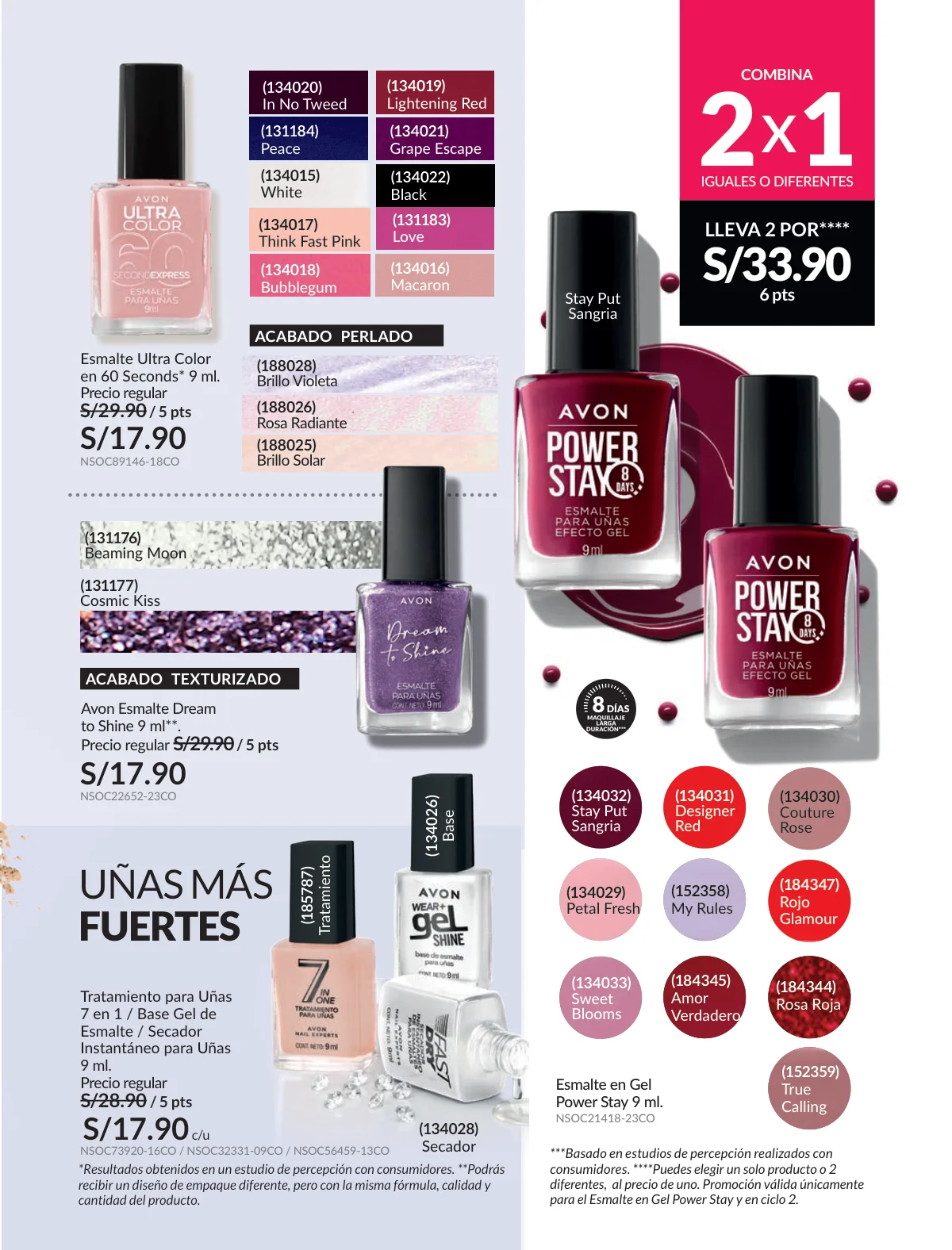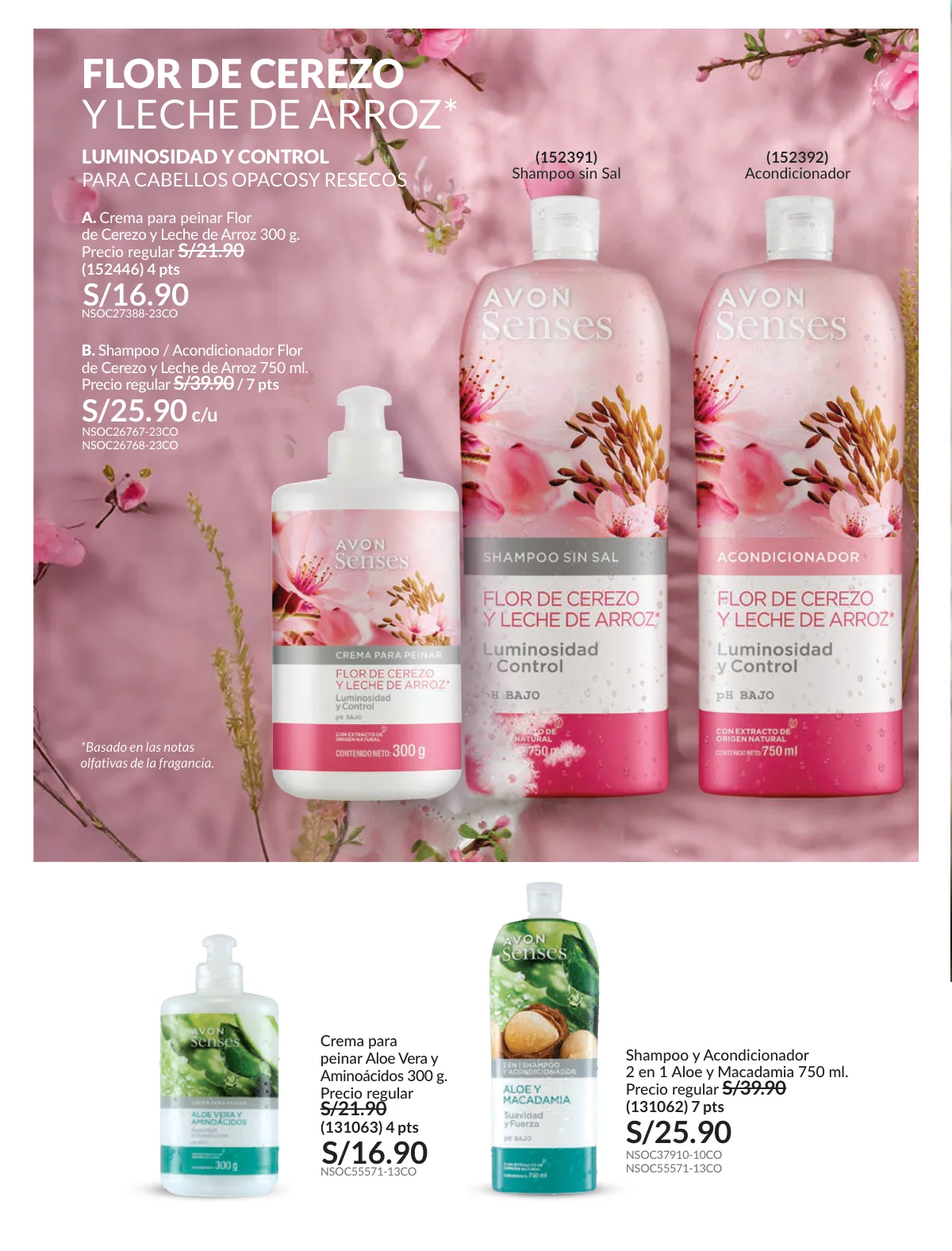Los productos del catálogo Avon campaña 2 2026 Perú cuidan de tu piel y la hacen lucir limpia, fresca e hidratada; te ayudan a protegerla contra los signos de la edad y a recuperar su firmeza, cuida de tus manos y pies, te protegen de los dañinos rayos UV, a ti y toda tu familia, con fórmulas y tecnologías altamente avanzadas para brindarte un cuidado especializado.