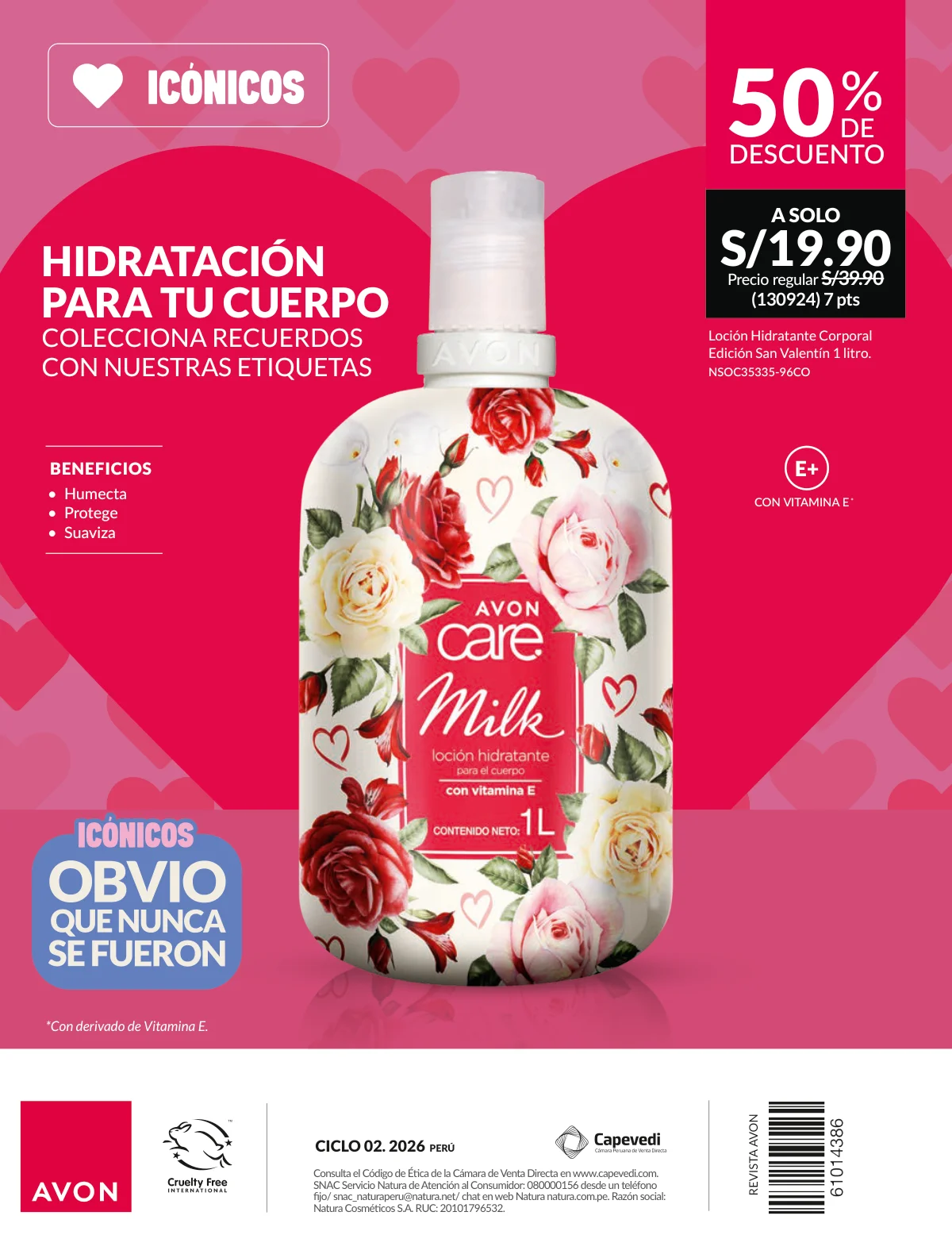Protege y humecta la piel de tu familia con los productos que te brinda el Avon campaña 2 2026 Perú. Disponibles desde la página 19 y con descuentos especialmente diseñados para ti.