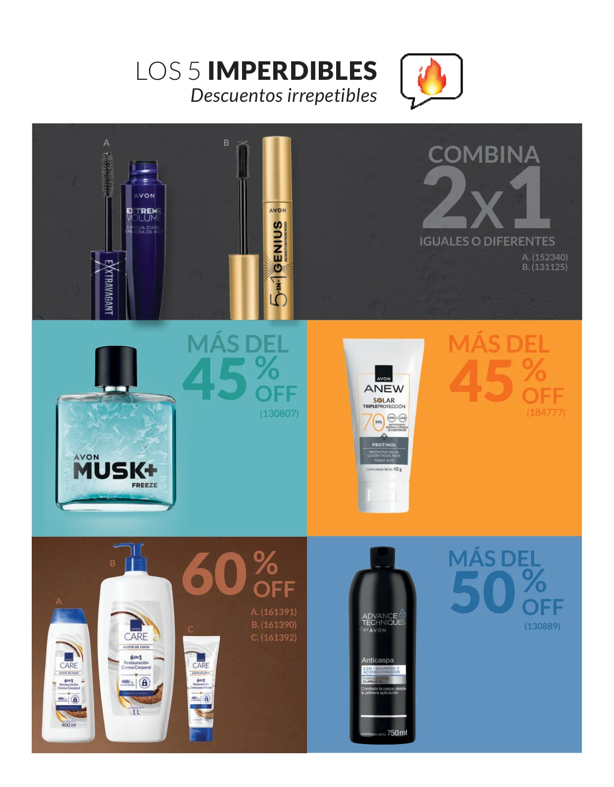 Protege y restaura tu piel con los nuevos productos que te trae el catálogo Avon campaña 2 2026 todos con excelentes descuentos, fórmulas científicamente comprobadas, para todo tipo de piel y para toda la familia. Disponibles desde la página 5.