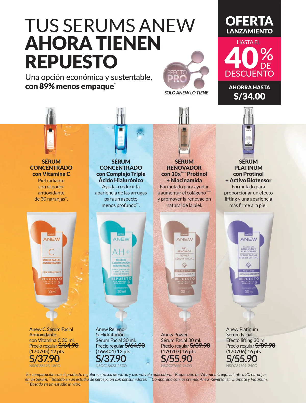 - Set por 3 conformado por: crema para ojos efecto lifting de 25g + crema de día con pantenol de 50 g + crema de noche con pantenol de 50g. Llévalas con descuento del 45% y además por la compra de este set llevas gratis el protector Anew Solar con FPS 30/50g.