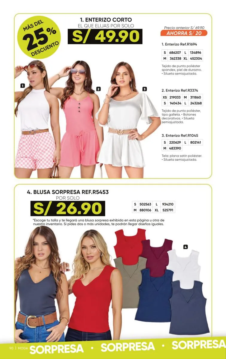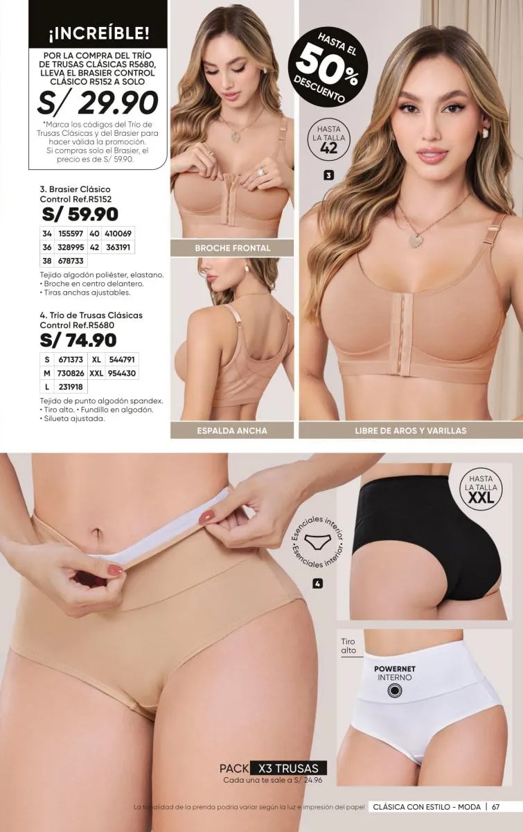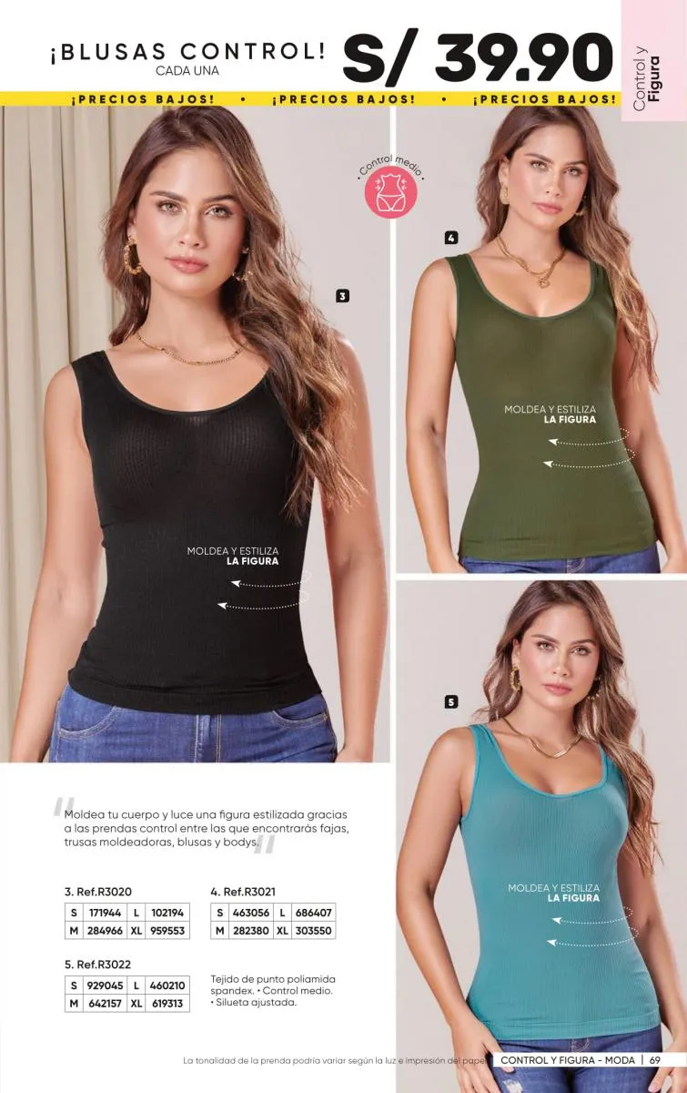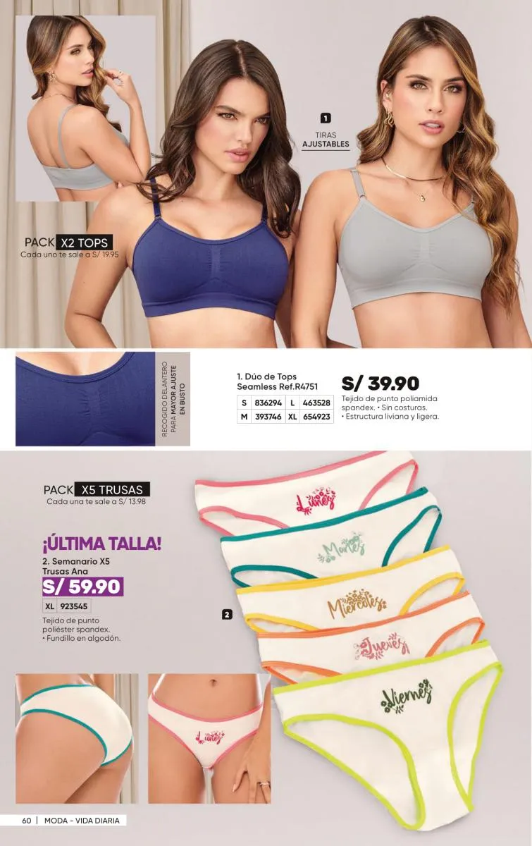 - El top + bralette (2 prendas, 3 looks) es otro imperdible este mes. Revisa tu talla ideal en la página 13.