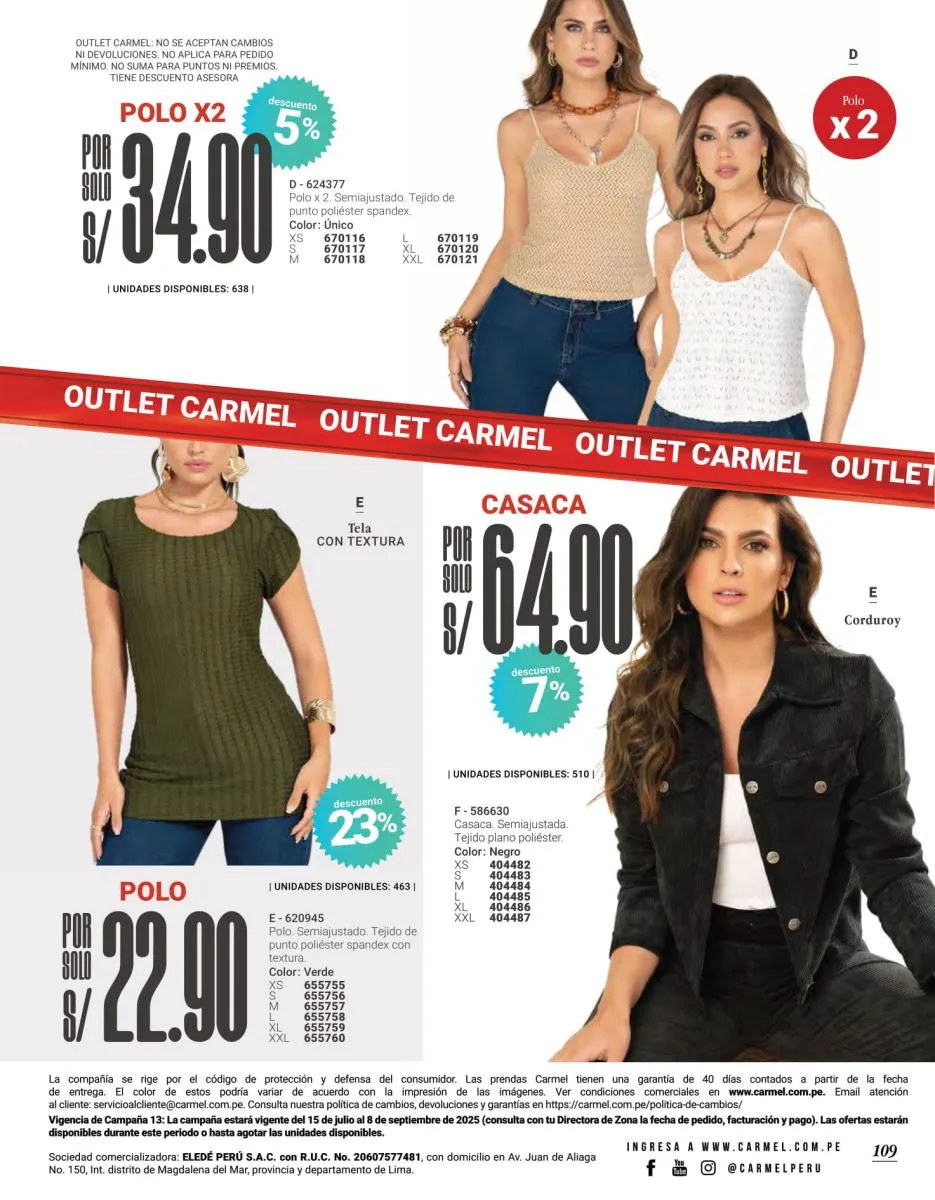 Esta es una Carmel campaña 16 2025 que viene de impacto con el estilo elegante y distinguido de las piezas de esta temporada. Carmel Perú trae este mes las prendas que más van a destacar tu figura: