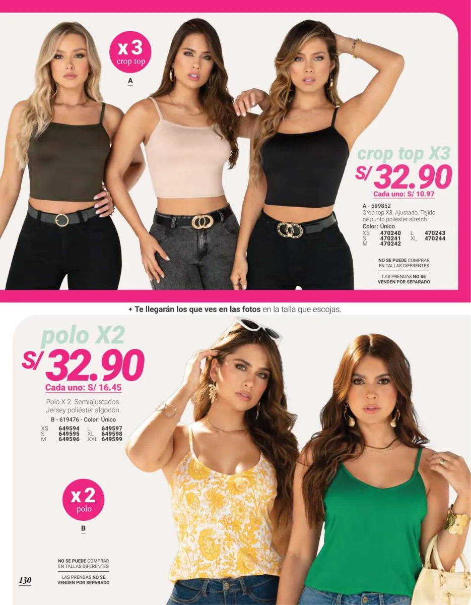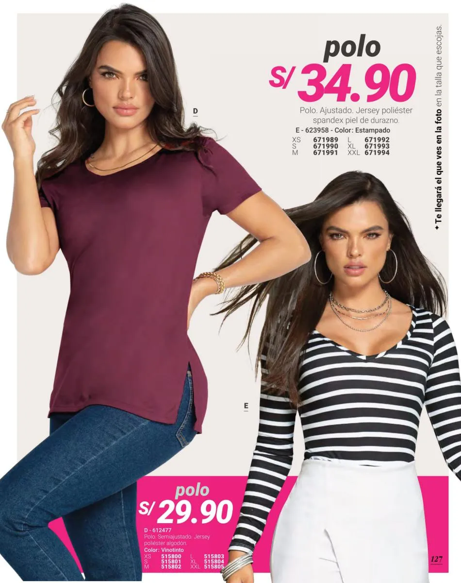 - Y si hablamos de estilos básicos, los polos o vestidos son un infaltable en tu pedido de este mes. No puedes tener un guardarropa completo sin alguna de estas piezas y más cuando las consigues a un excelente precio.