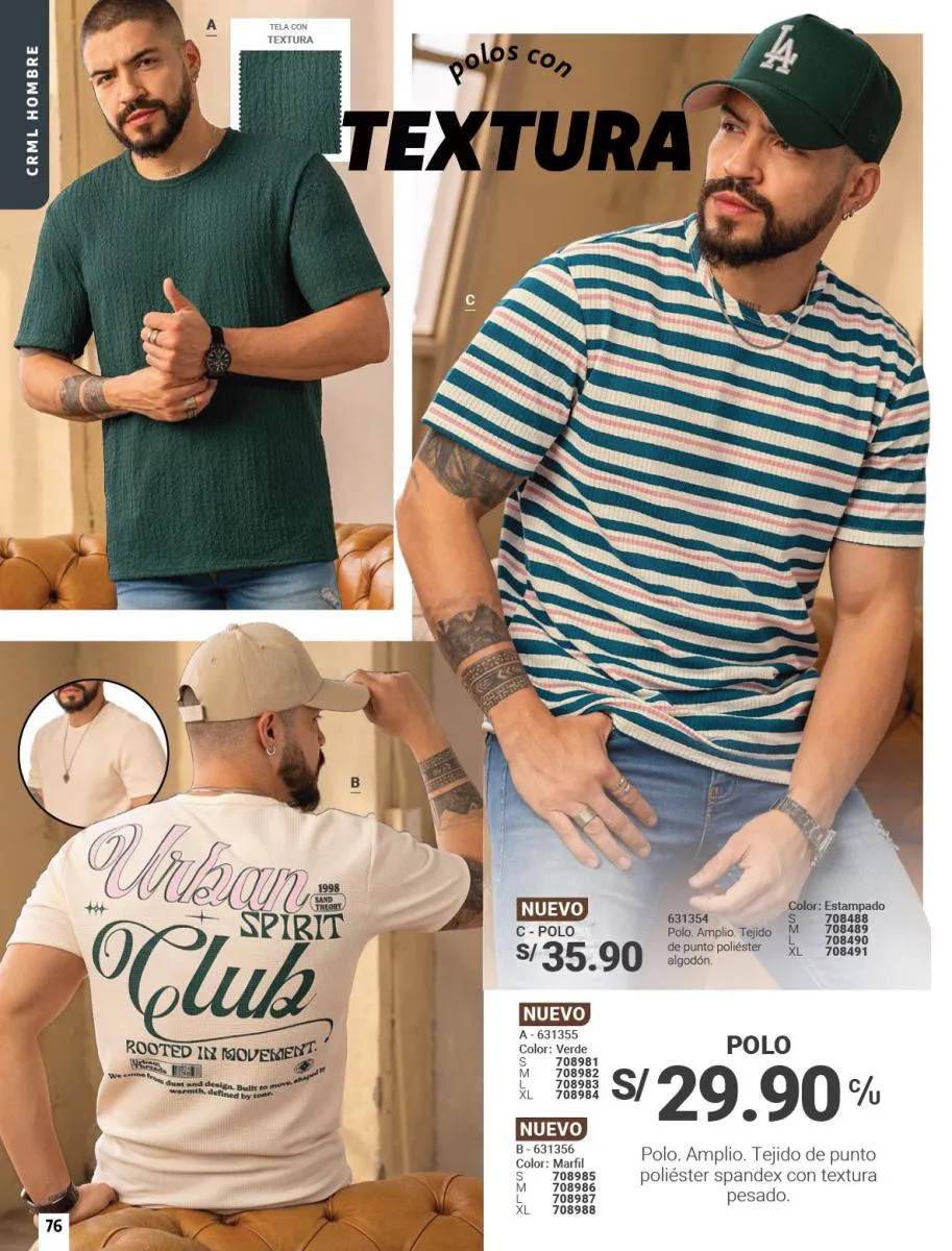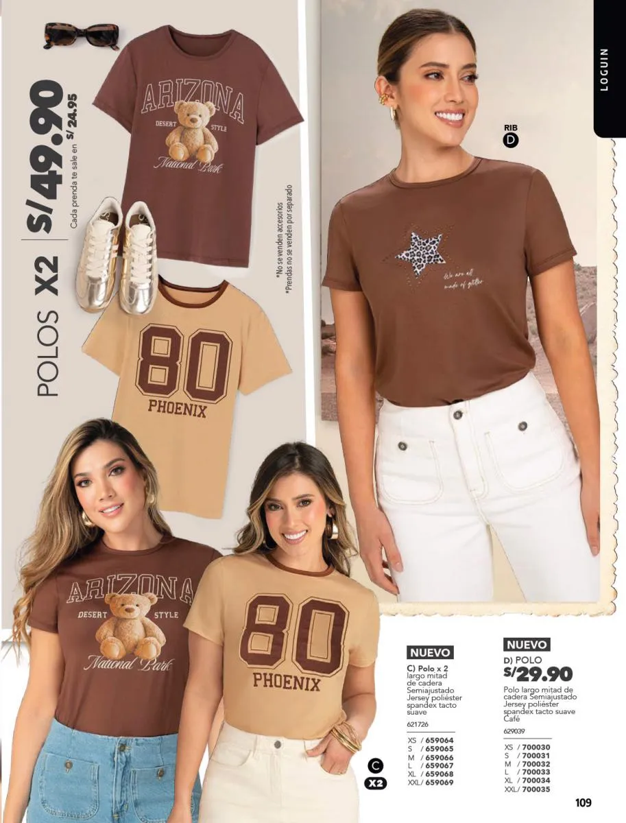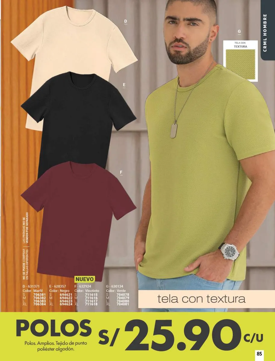 - Las camisetas de tonos diversos son otro “Hit” en esta colección. Revisa la variedad de ellas en la páginas a lo largo de todo el catálogo.