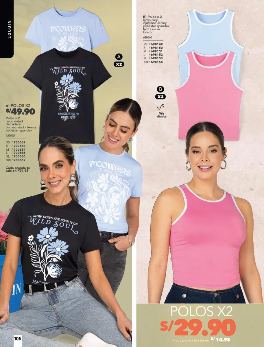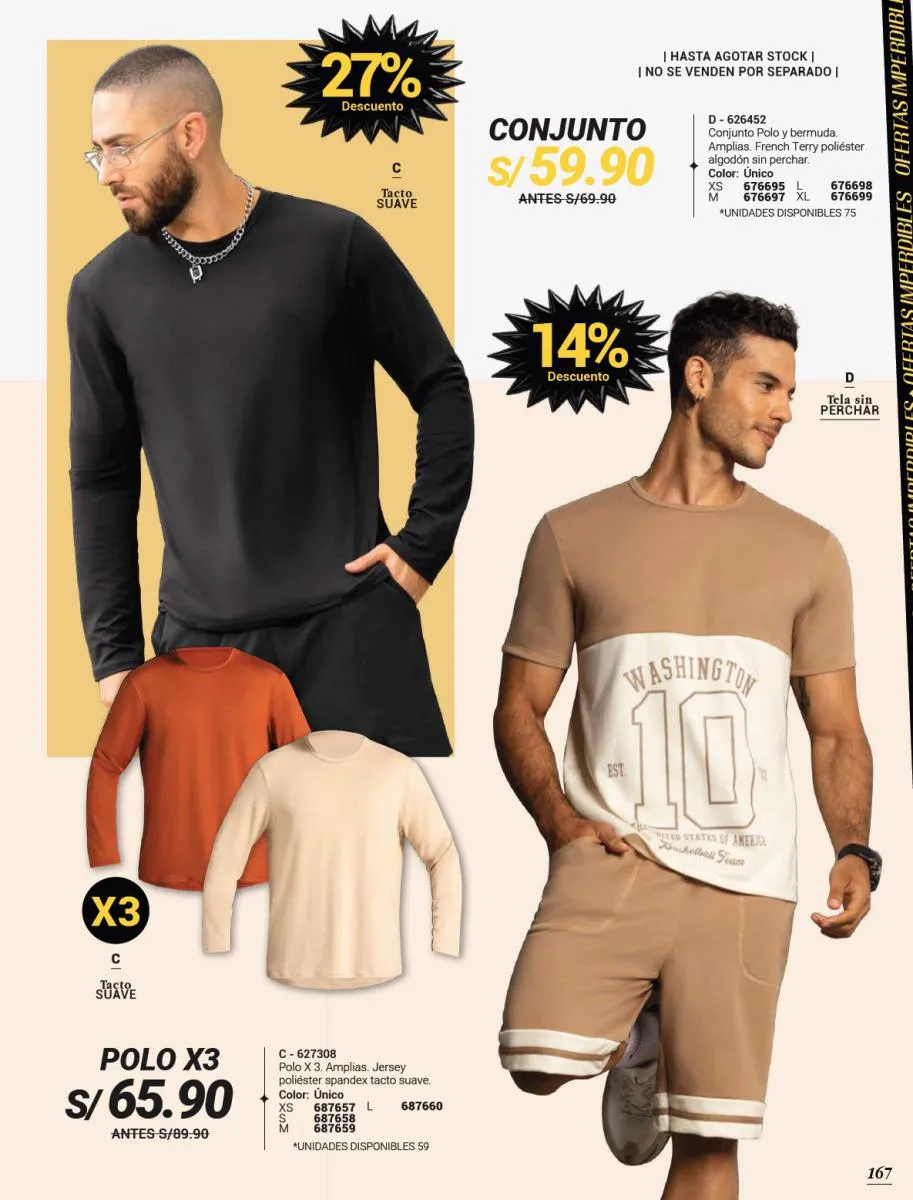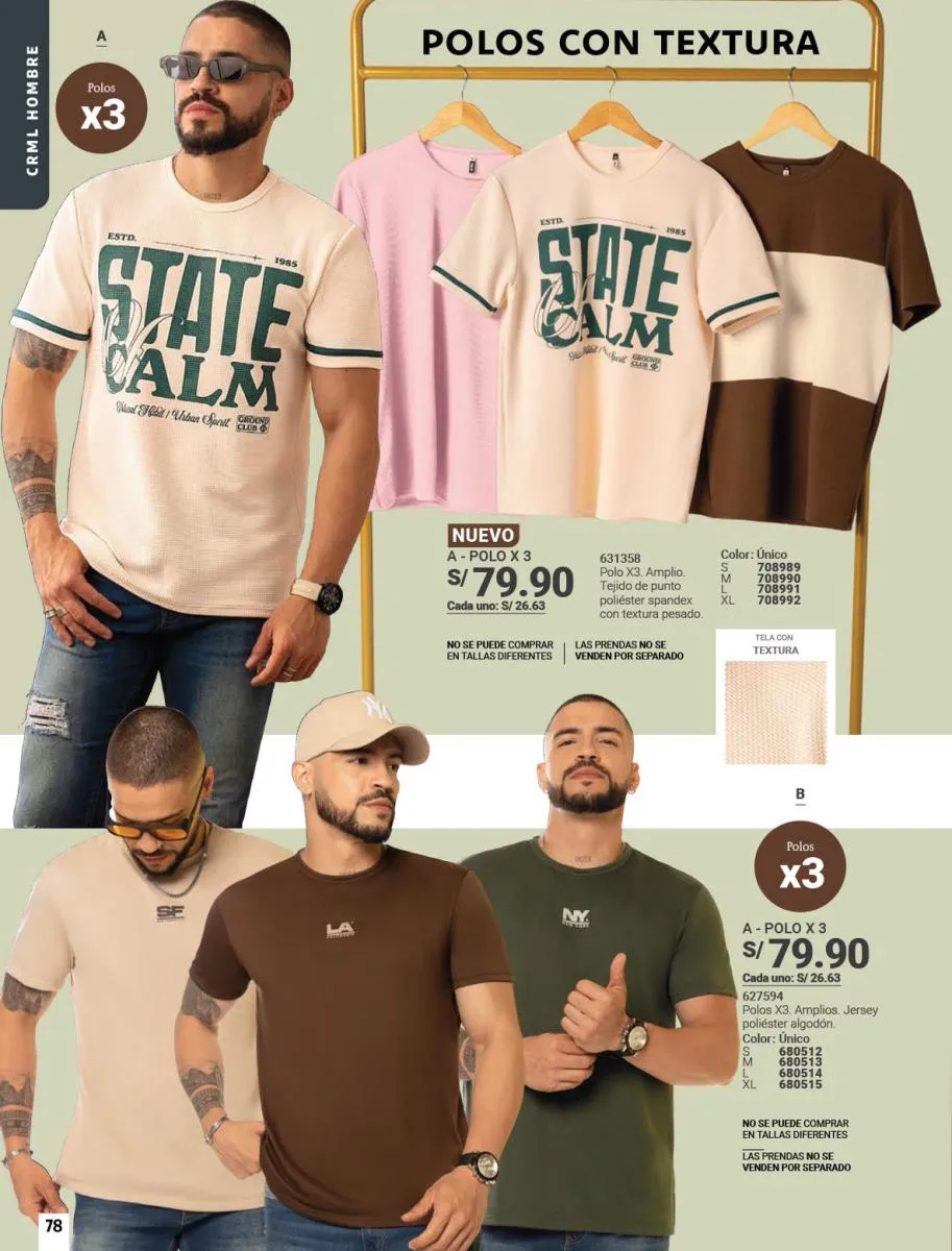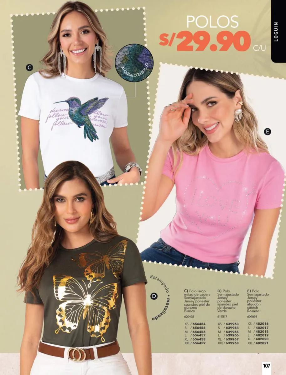 - Las camisetas de tonos diversos son otro “Hit” en esta colección. Revisa la variedad de ellas en la páginas a lo largo de todo el catálogo.