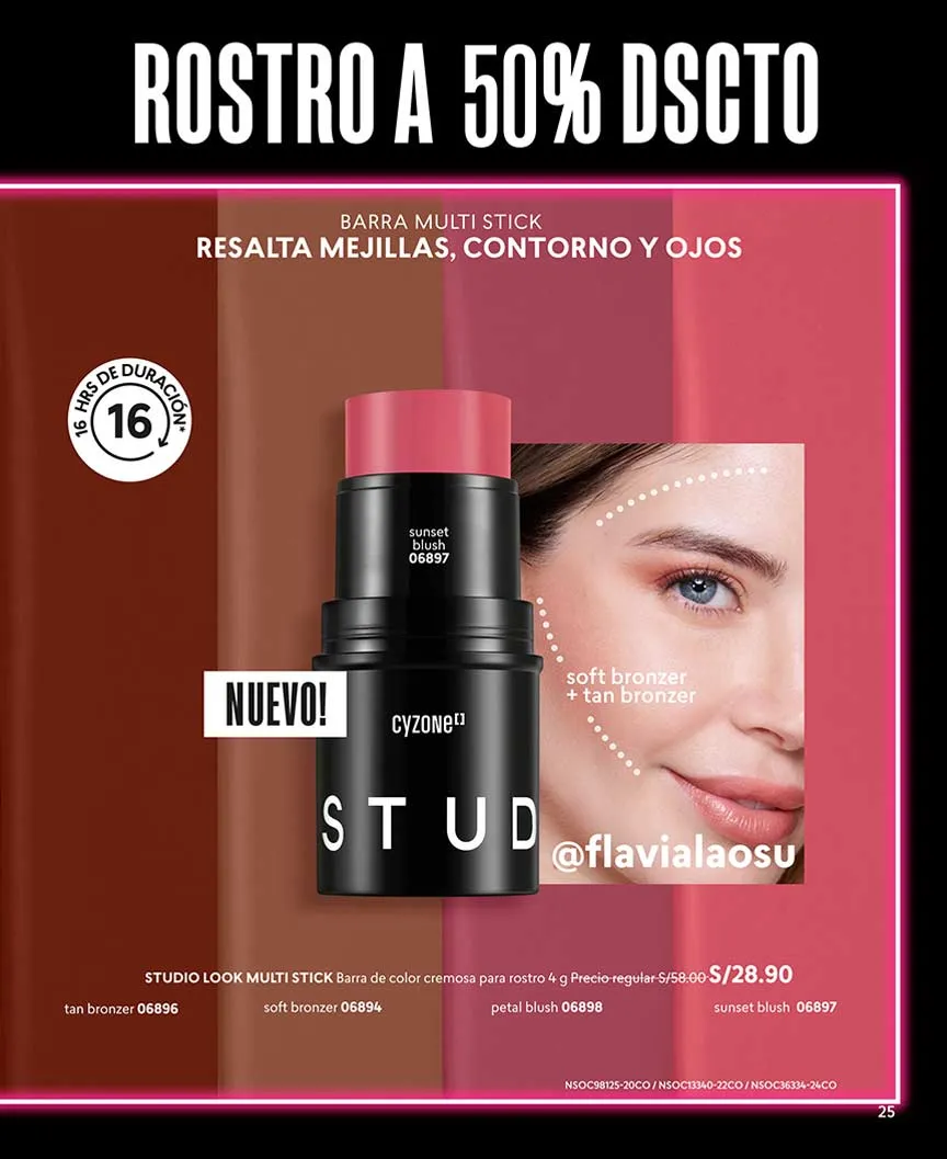 En el catálogo Cyzone campaña 16 2025 Perú traemos para ti cosméticos que protegen y cuidan la piel de tu rostro además de completar tu look y hacerte ver radiante cada día con un cabello sedoso.