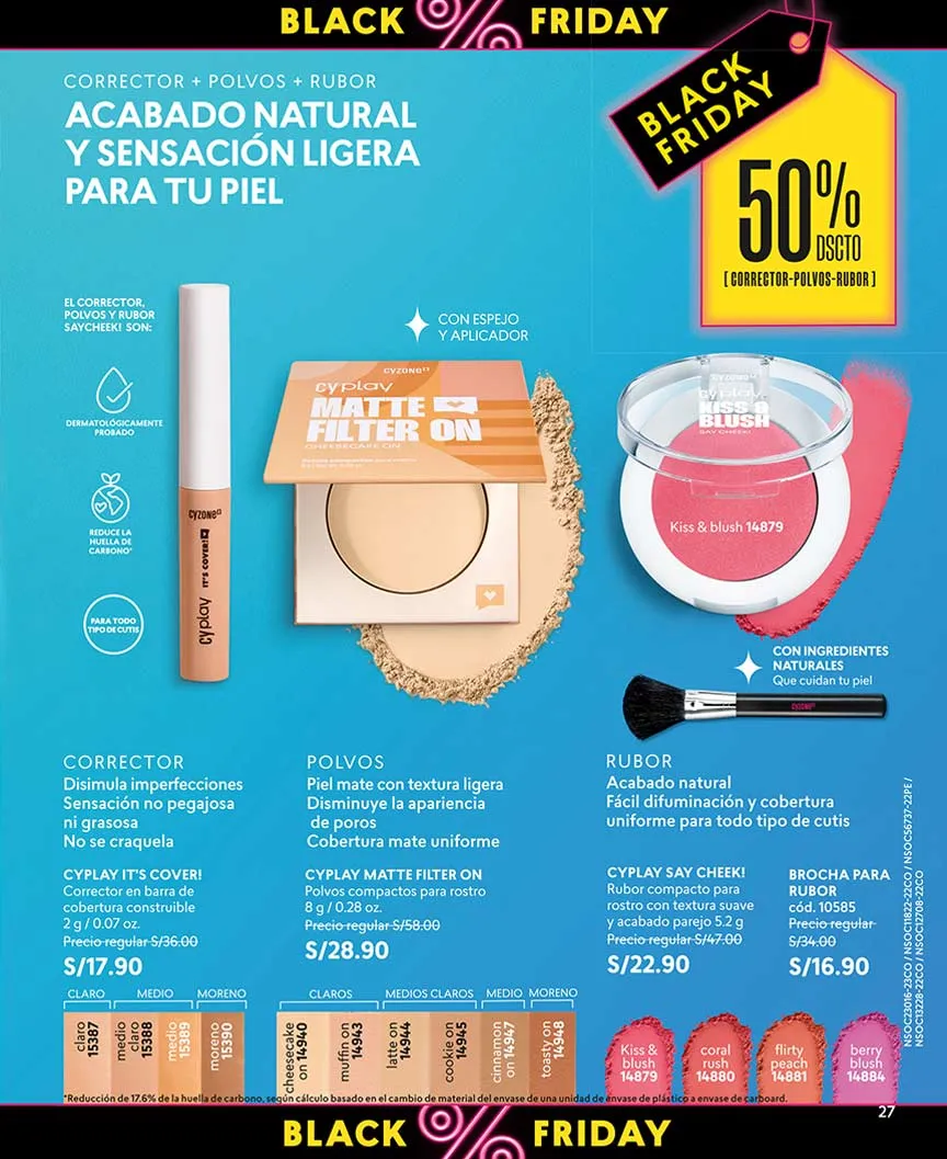 Si deseas conseguir un acabado más natural con máxima cobertura que te ofrezca larga duración, en el Cyzone campaña 16 2025 te brindamos una selección de cosméticos 100% de origen natural y eco amigable que dejara una agradable sensación al momento del maquillaje gracias a su textura ligera