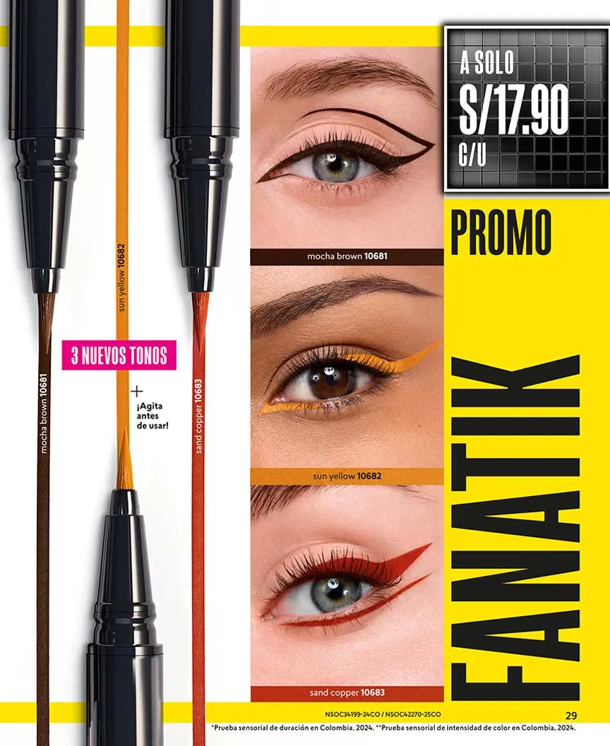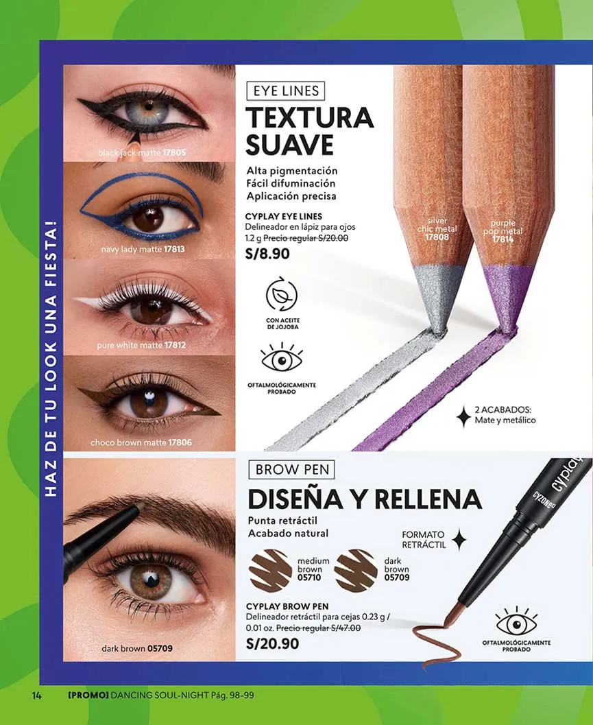 - El Delineador para ojos de la línea CY Line 4 Ever Pincel te ofrece calidad garantizada, sin importar el clima o la ocasión mantén un delineado intacto, es fácil de aplicar gracias a su punta pincel ya que permite realizar un trazo limpio y uniforme, 3 ml. Pag 33.