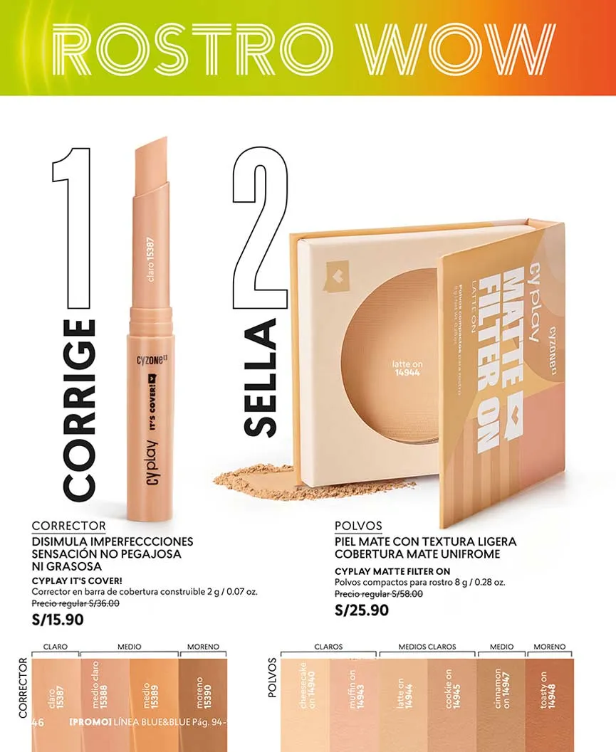 • Con el paso 3 podrás corregir esas molestas imperfecciones con el Corrector facial de alta cobertura. 4 g. Pag 12.