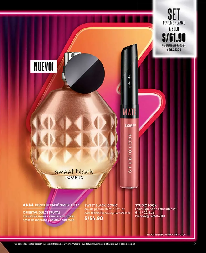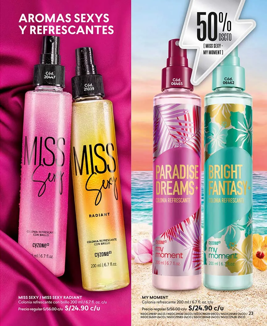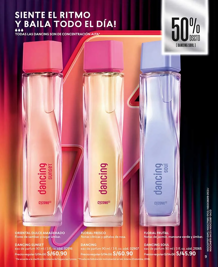 Libera tu sensualidad con el catálogo Cyzone campaña 8 2026 Perú en esta temporada te brindamos fragancias certificadas y elaborados con los más altos estándares de perfumerías ofreciéndote una maravillosa sensación, que te transporta a un mundo lleno de notas tropicales y orientales para que cada día vivas una nueva experiencia.