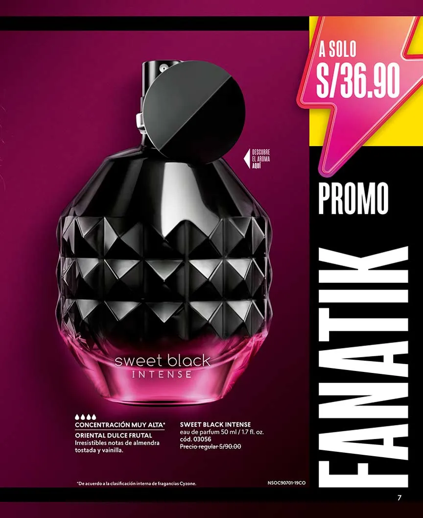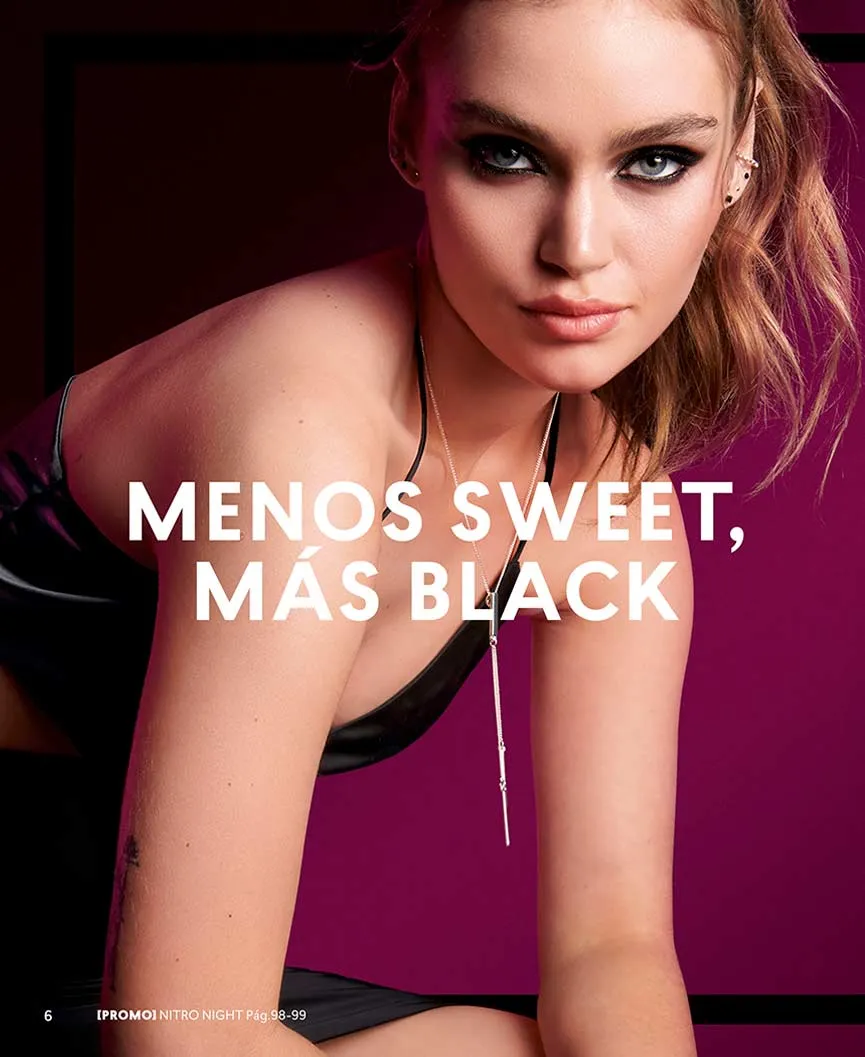 Más atrevida, menos Sweet mas Black intense te brinda aromas Orientales dulces de las almendras tostadas y toques de vainilla en su presentación Eau de parfum, 50 ml. Pag 68.