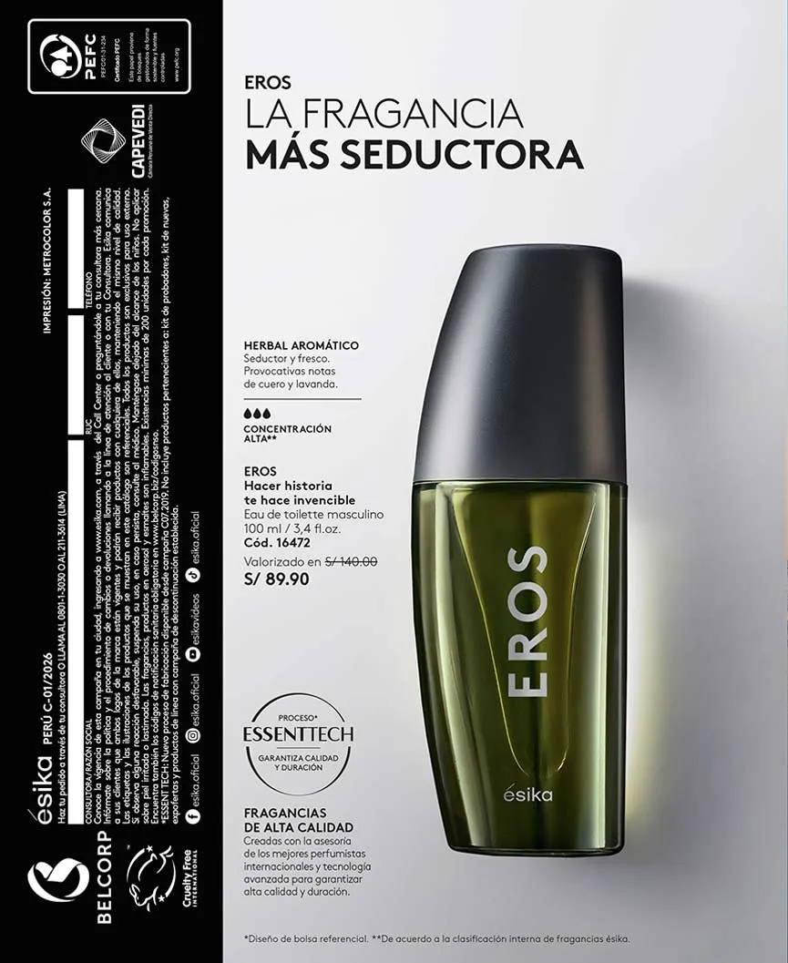 Desprende sutileza y sensualidad con los exclusivos productos que el сatálogo Ésika сampaña 1 2026 Perú te ofrece. Despierta esa fiera que habita en tu interior y renueva tu ser con productos diseñados para hacerte sentir única y poderosa como nunca antes, con los mejores precios que te puedas imaginar.