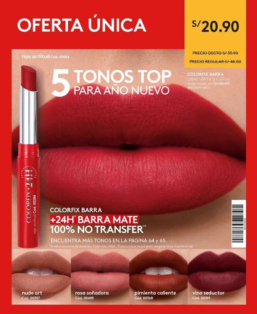 • Cobertura que no transfiere con el Colorfix Base, Base de maquillaje con 24 horas de duración. Pag 33.
