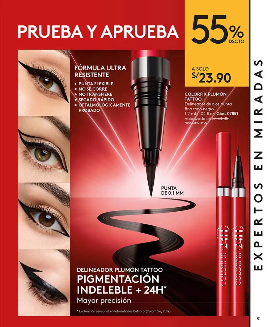 • Un delineado con un acabado perfecto y duradero te ofrece el exquisito Colorfix Gel Tattoo, Delineador para ojos de 24h. Pag 32.